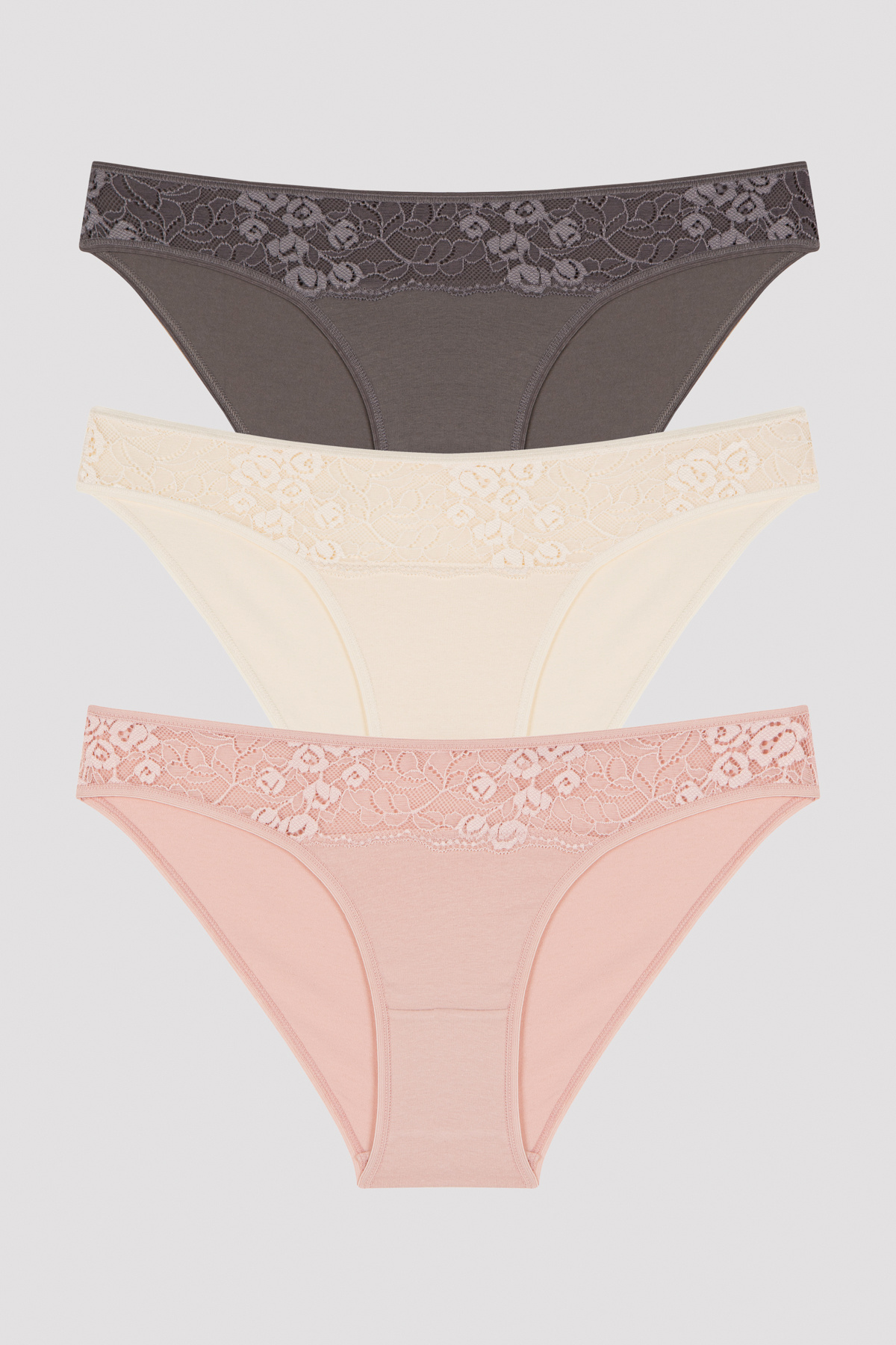 Daily Lace 3lü Pamuklu Bej Slip Külot Daily Lace 3lü Pamuklu Bej Slip Külot PLDLC3SL17IY-GMX XL