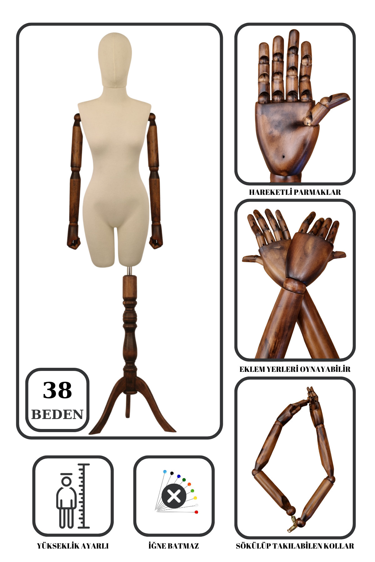 Ahşap Kollu 38 Beden Kadın Terzi Mankeni, Prova Mankeni, Vitrin Mankeni, Kukla Manken Ahşap Kollu 38 Beden Kadın Terzi Mankeni, Prova Mankeni, Vitrin Mankeni, Kukla Manken ahşapkollu02 تک سایز