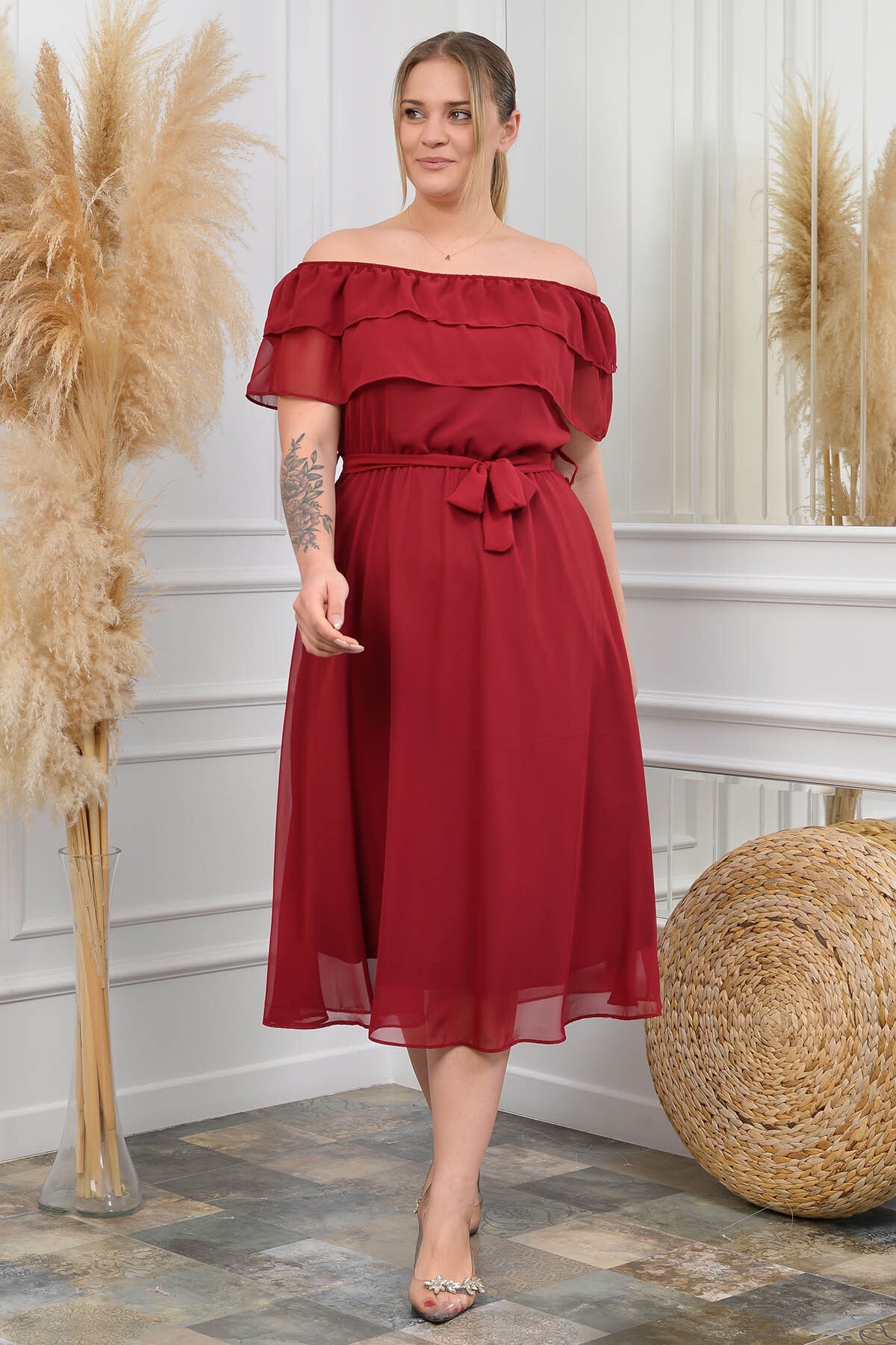Kadın Saks Mavisi Carmen Yaka Büyük Beden Şifon Elbise Nb8061 Kadın Saks Mavisi Carmen Yaka Büyük Beden Şifon Elbise Nb8061 NB8061 50