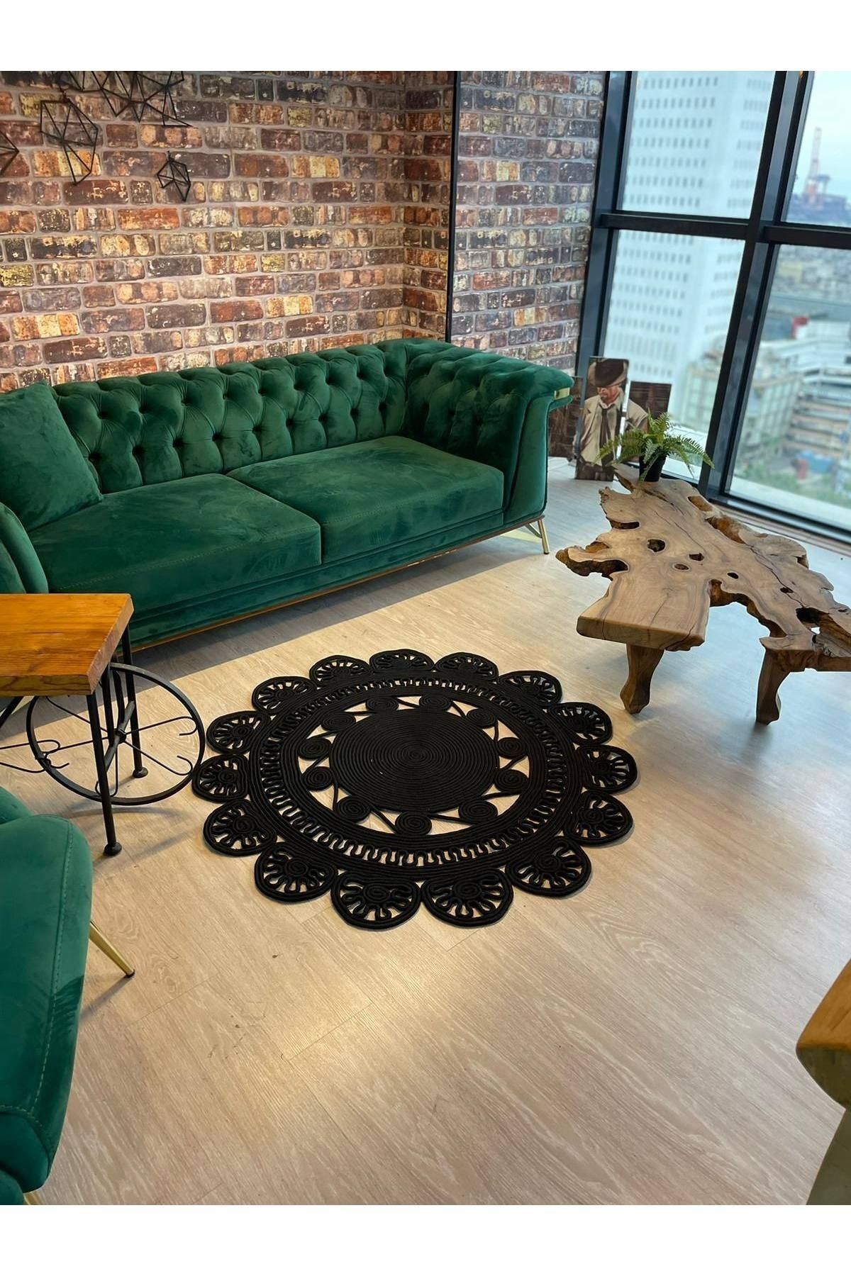Siyah Maise Dikdörtgen Jüt %100 El Örmesi Hasır Antialerjik Kilim Siyah Maise Dikdörtgen Jüt %100 El Örmesi Hasır Antialerjik Kilim TRQ008 160 x 230