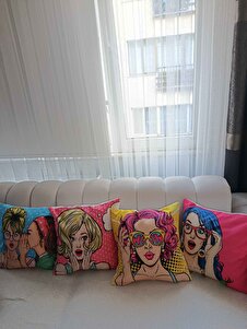 Pop Art Kızları 4 Lü Kombin Kırlent Kılıfı Pop Art Kızları 4 Lü Kombin Kırlent Kılıfı KM196316 43 x 43