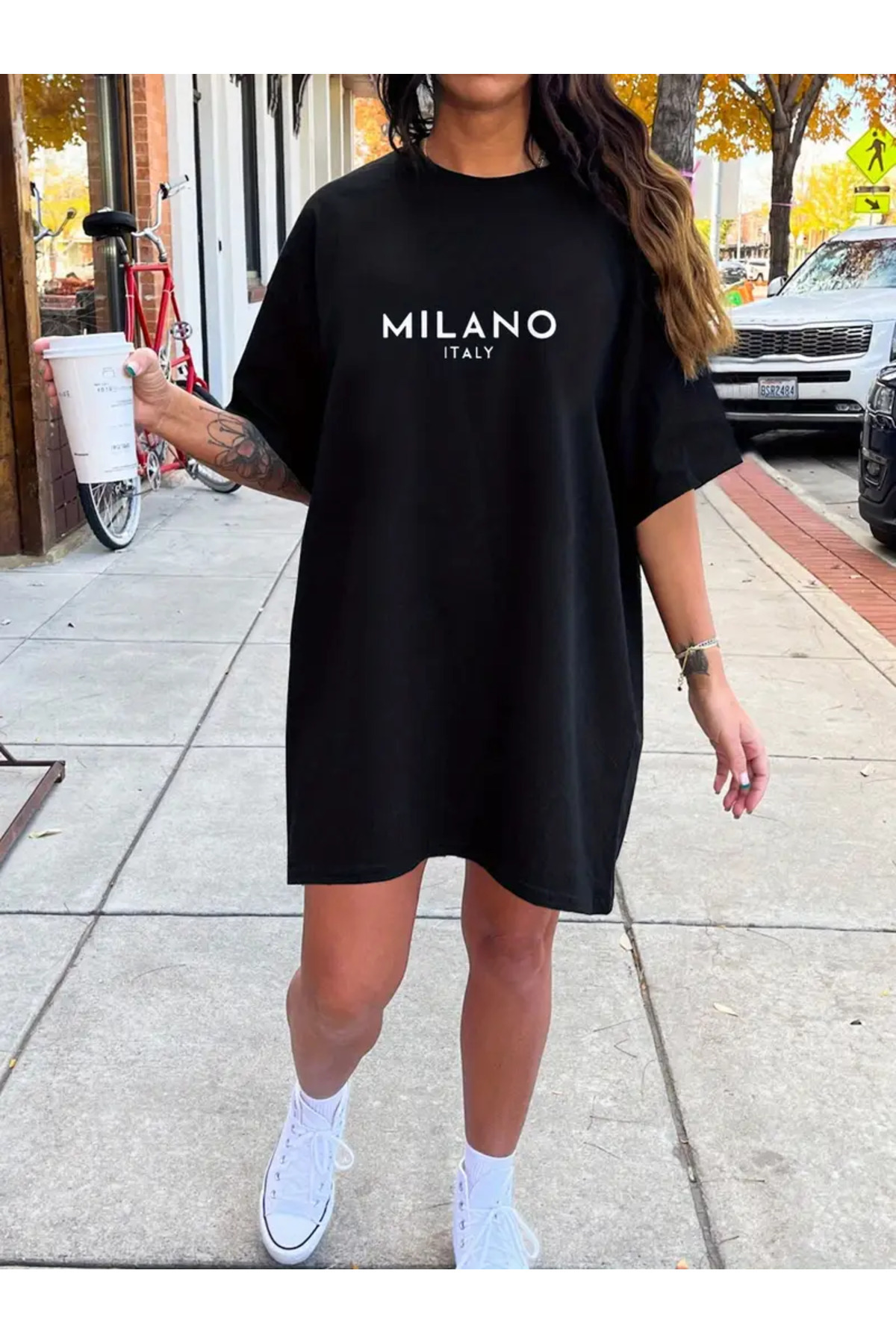 Kadın Siyah Sırt Baskılı Cepli T-shirt Elbise Kadın Siyah Sırt Baskılı Cepli T-shirt Elbise KSSBCT-112 L