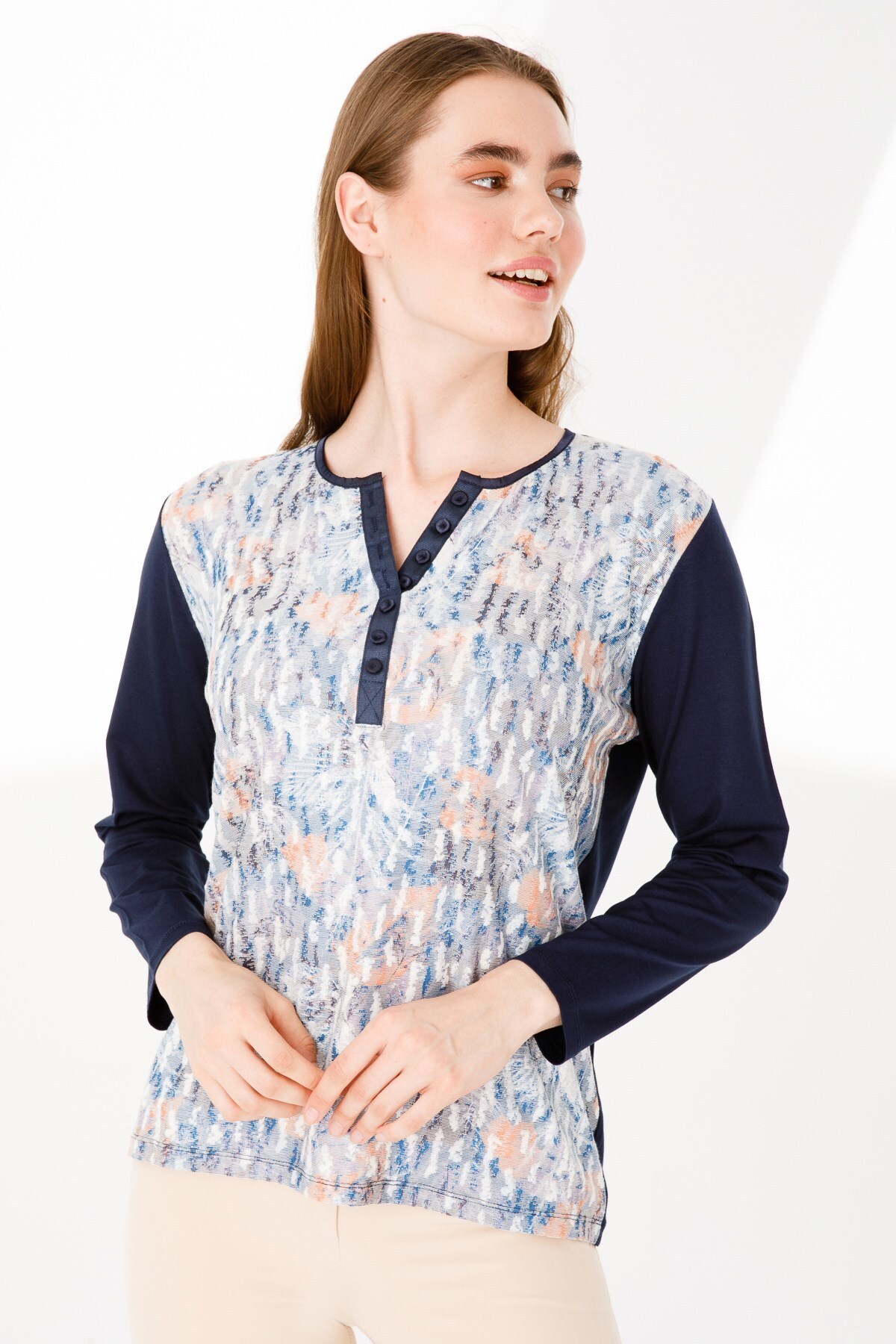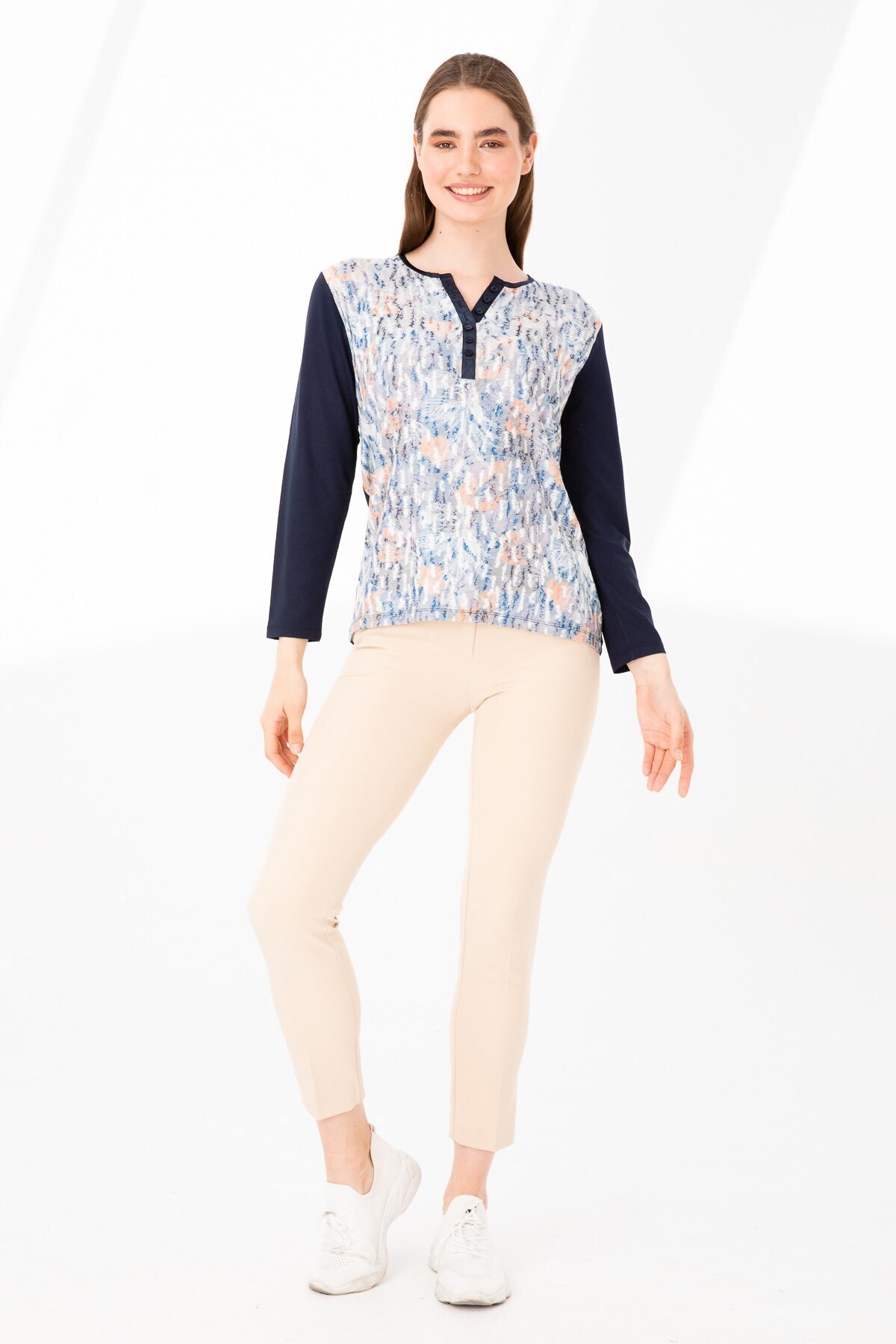 Kadın Açma Yaka Truvakar Kol Desenli Penye Bluz Lacivert Kadın Açma Yaka Truvakar Kol Desenli Penye Bluz Lacivert 20831 XL