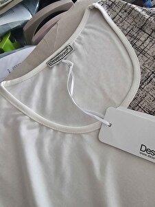 Kadın Sıfır Yaka Kısa Kol Kumaşlı Penye Bluz Kemik Kadın Sıfır Yaka Kısa Kol Kumaşlı Penye Bluz Kemik 21745 XL