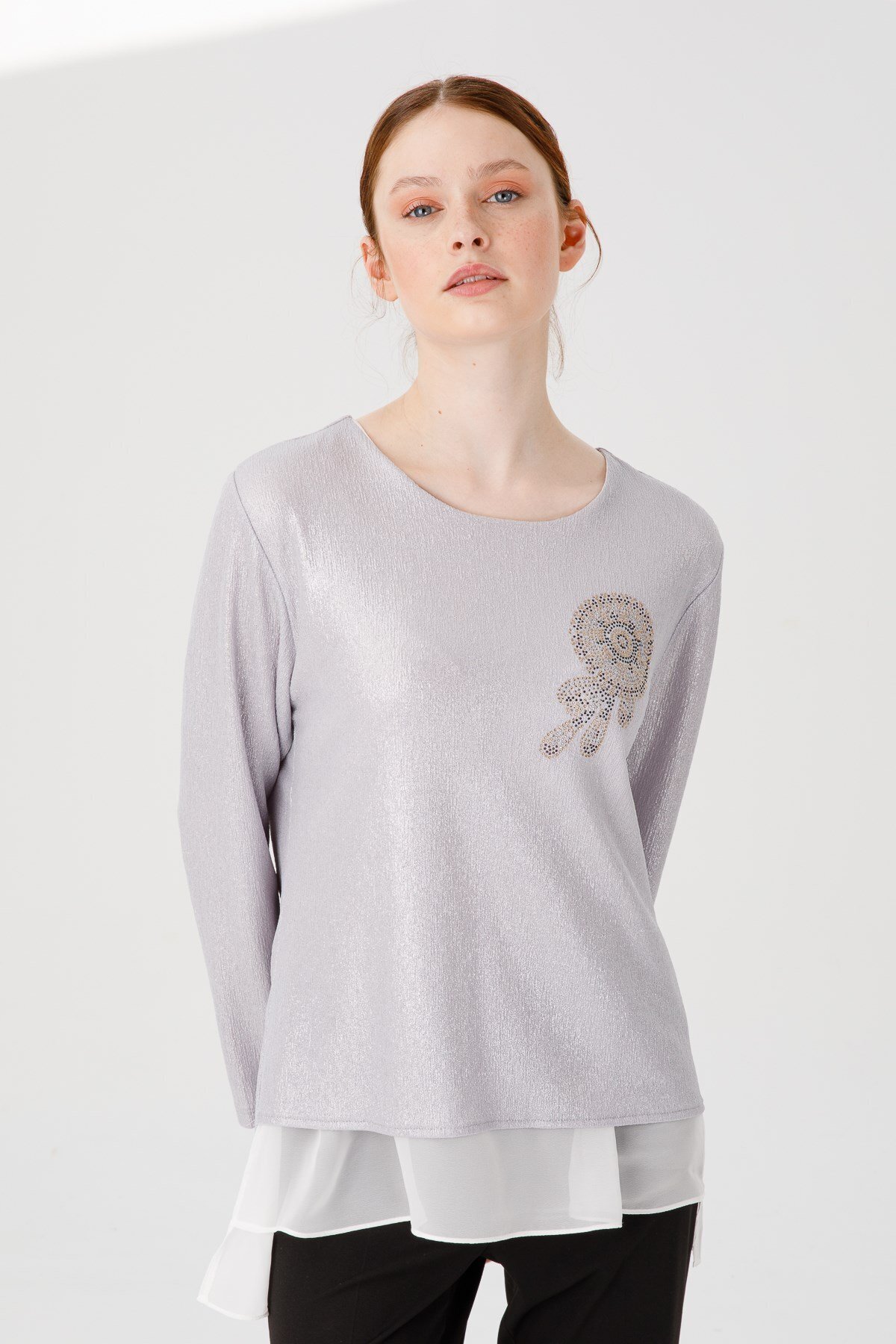 Kadın Sıfır Yaka Uzun Kol Şifonlu Parlak Kumaş Bluz Gümüş Kadın Sıfır Yaka Uzun Kol Şifonlu Parlak Kumaş Bluz Gümüş 21964 XL