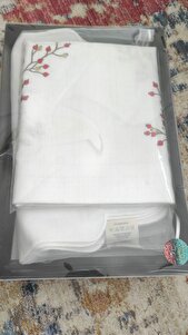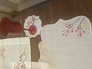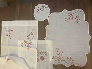 Kırmızı Çiçekli Desen Ithal Keten Nakışlı Amerikan Servis Takımı Tabak Altlığı Ve Bardak Altlığı Kırmızı Çiçekli Desen Ithal Keten Nakışlı Amerikan Servis Takımı Tabak Altlığı Ve Bardak Altlığı TNMHM210300CD تک سایز
