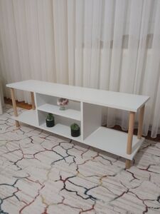 Tv Sehpası Raflı Tv Ünitesi Televizyon Sehpası Ahşap Ayaklı - Beyaz Tv Sehpası Raflı Tv Ünitesi Televizyon Sehpası Ahşap Ayaklı - Beyaz TVSHP تک سایز