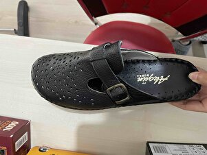 Kadın Siyah Hakiki Deri Ortopedik Sabo Terlik Kadın Siyah Hakiki Deri Ortopedik Sabo Terlik Yaprak 600 42