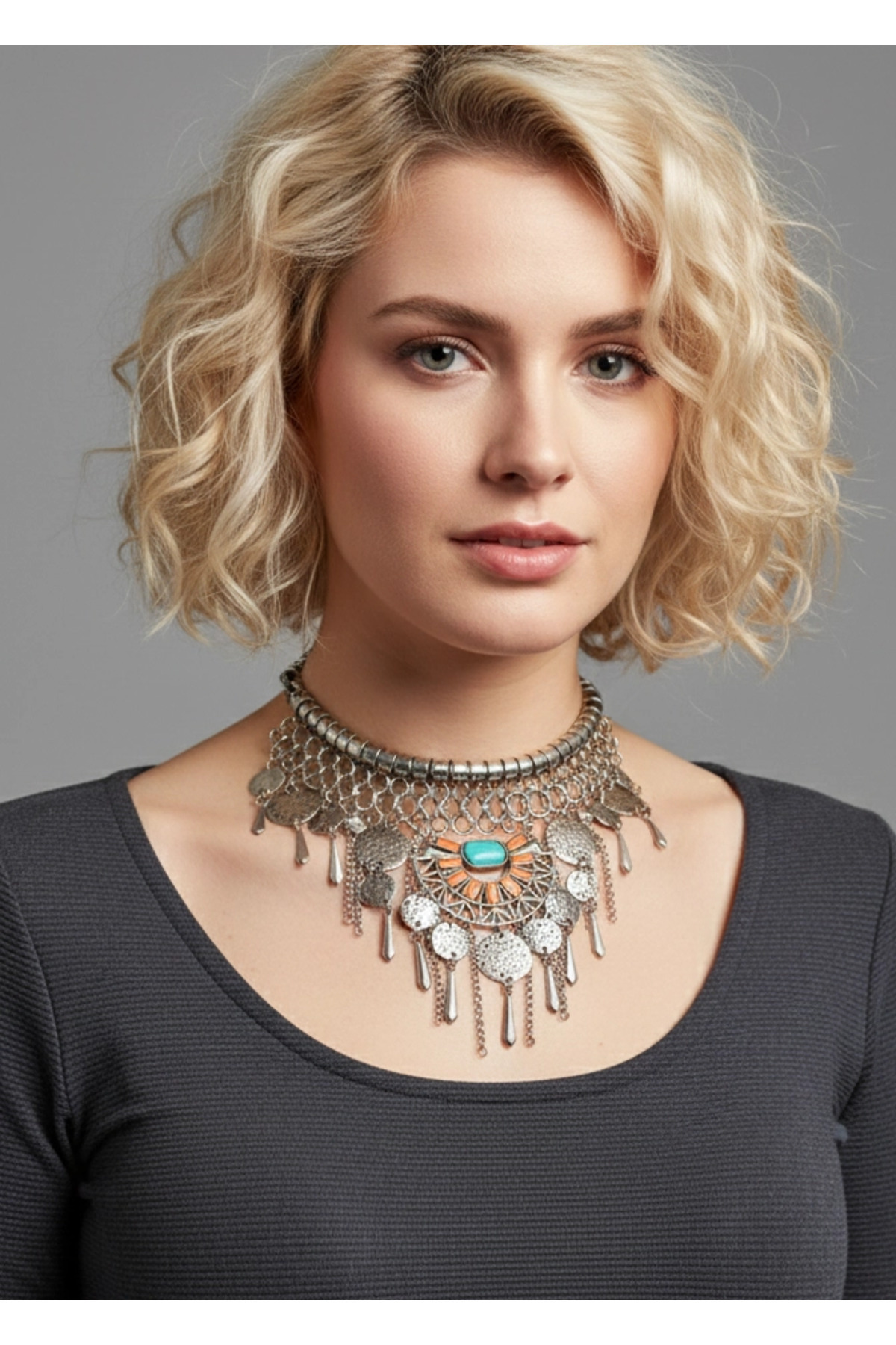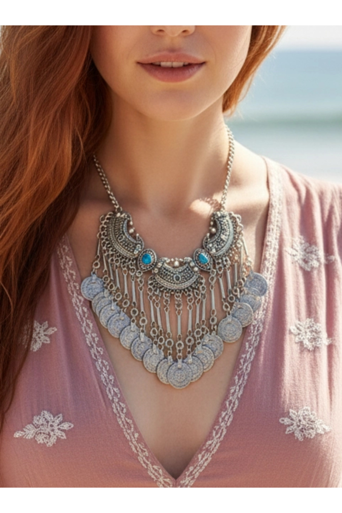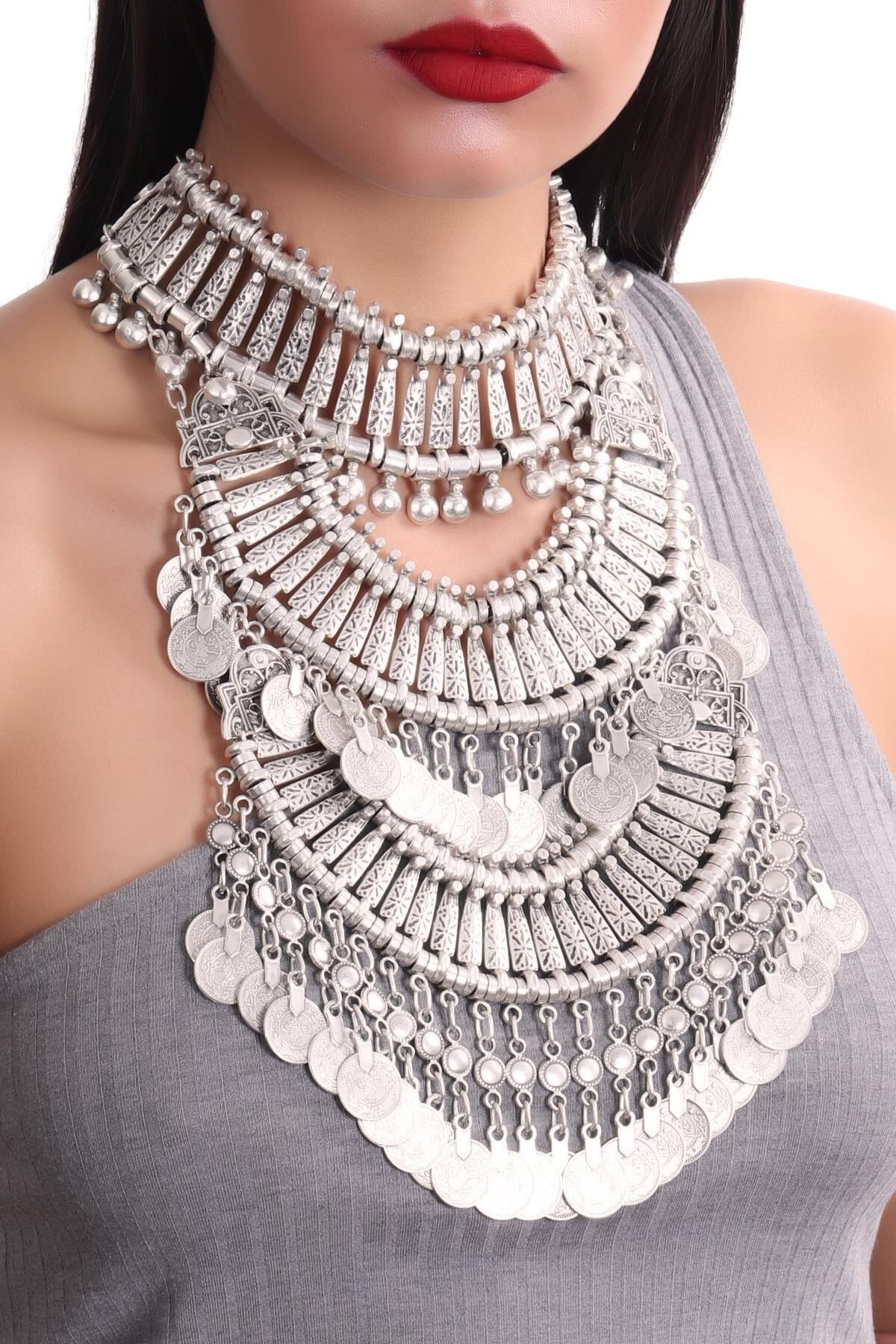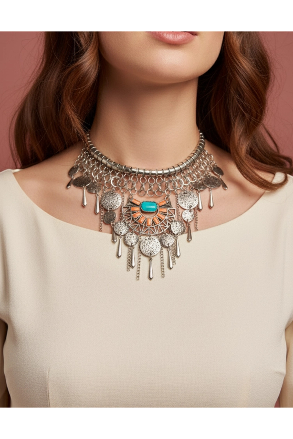 Orange Ve Turkuaz Antik Mısır Silver Kolye modern stil gece günlük abiye zarif şık Orange Ve Turkuaz Antik Mısır Silver Kolye modern stil gece günlük abiye zarif şık TYC00059972937 تک سایز
