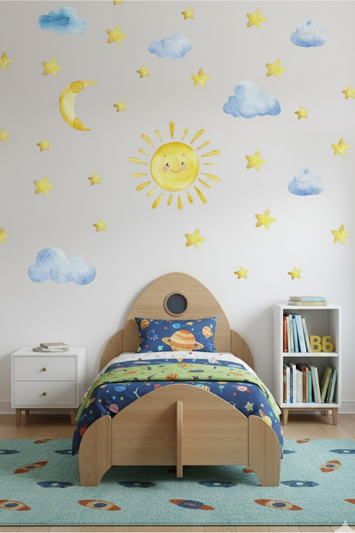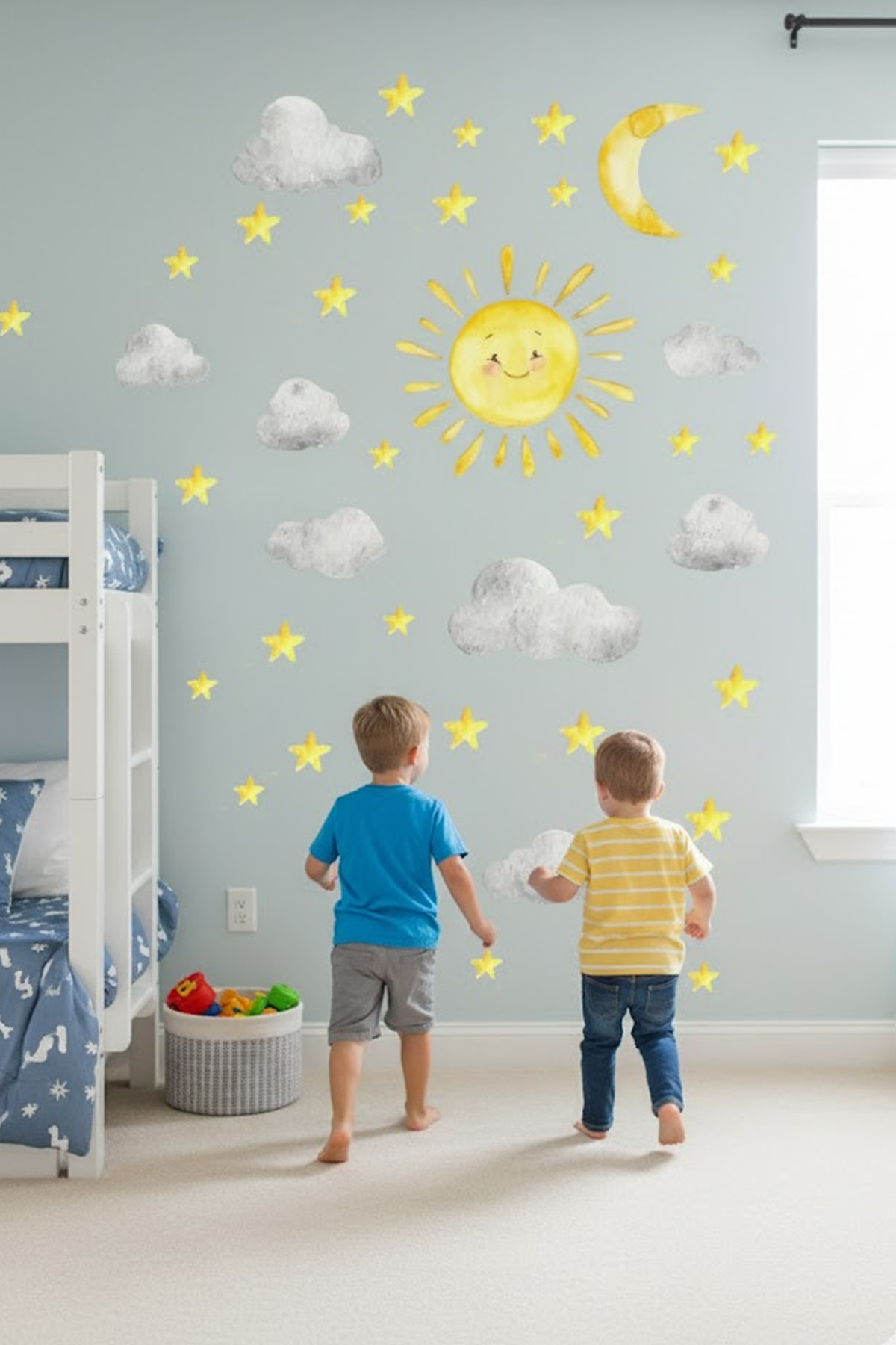 Suluboya Güneş Bulutlar Yıldızlar ve Ay Duvar Sticker Seti Suluboya Güneş Bulutlar Yıldızlar ve Ay Duvar Sticker Seti 12785594 تک سایز