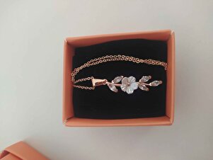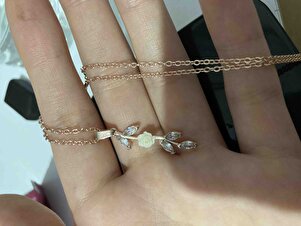 Manolya Beyaz Taşlı Uzun Model 14 K Rose Altın Kaplama Kadın Kolye Manolya Beyaz Taşlı Uzun Model 14 K Rose Altın Kaplama Kadın Kolye K27-T 45 cm