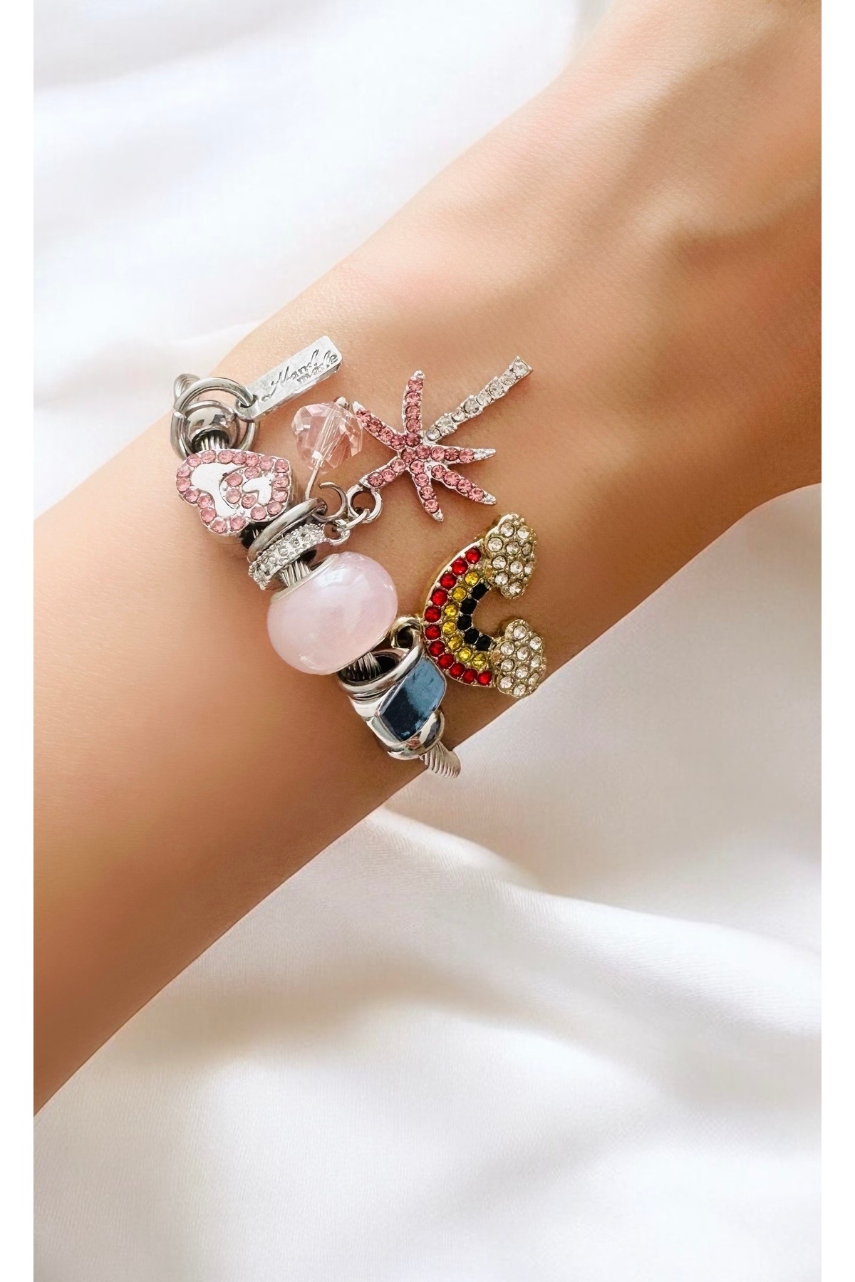 Çelik Tarzı Papatya Charmlı Bileklik Çelik Tarzı Papatya Charmlı Bileklik fd00045 18 cm