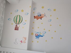 Sevimli Hayvanların Gökyüzü Yolculuğu Pastel Renk Duvar Sticker Seti Sevimli Hayvanların Gökyüzü Yolculuğu Pastel Renk Duvar Sticker Seti 12785452 70 x 120
