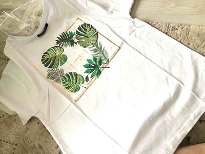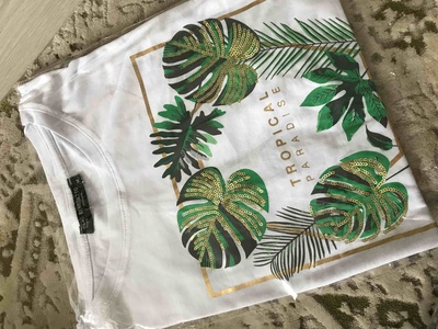 Kadın Beyaz Tropikal Yaprak Pul Payet Pamuk Tişört Kadın Beyaz Tropikal Yaprak Pul Payet Pamuk Tişört 23trpcl81 XL