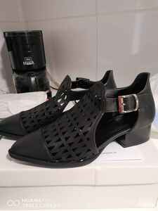 Medi Kadın Lazer Desenli Özel Tasarım Toka Ayarlı Siyah Cilt Yazlık Ayakkabı Medi Kadın Lazer Desenli Özel Tasarım Toka Ayarlı Siyah Cilt Yazlık Ayakkabı P24S5096 40