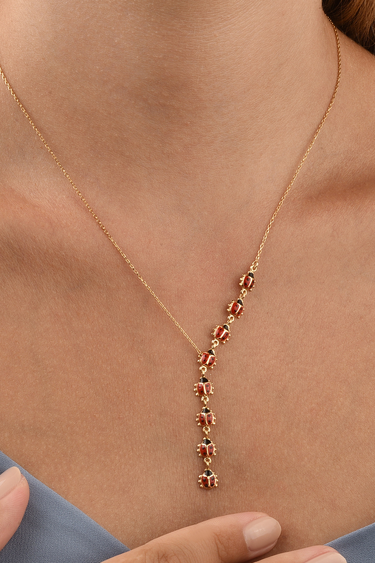 925 Ayar Gümüş Rose Kaplama Akışlı Uğur Böceği Kadın Kolye 925 Ayar Gümüş Rose Kaplama Akışlı Uğur Böceği Kadın Kolye UVPS101752 تک سایز