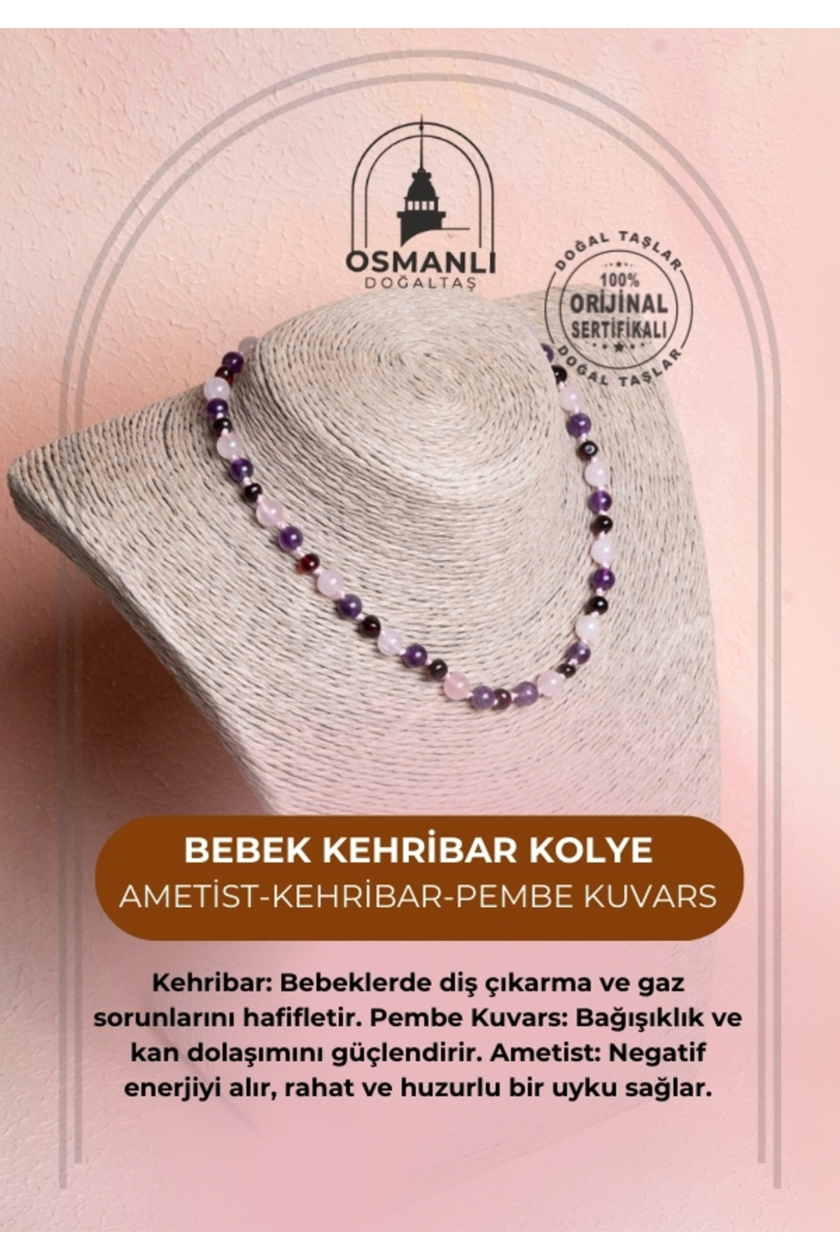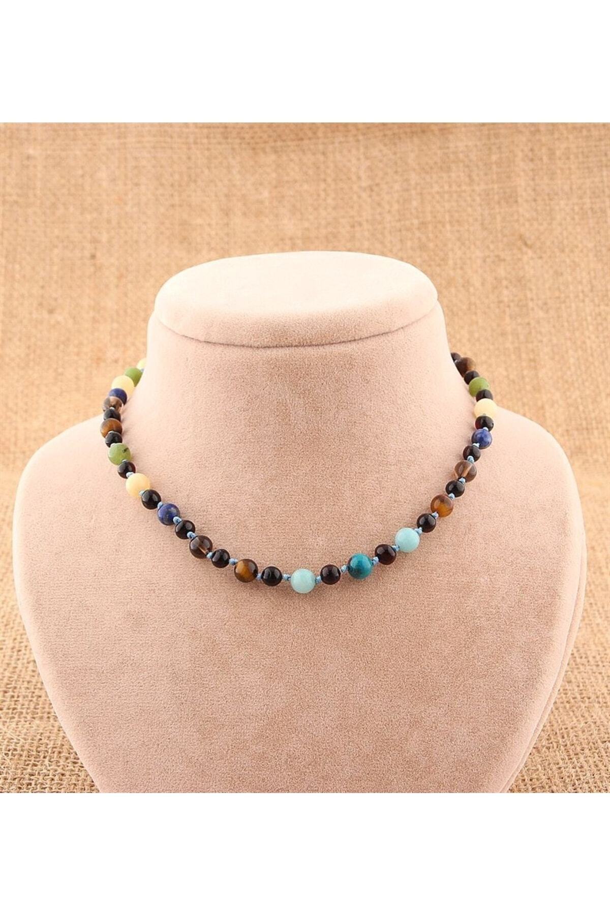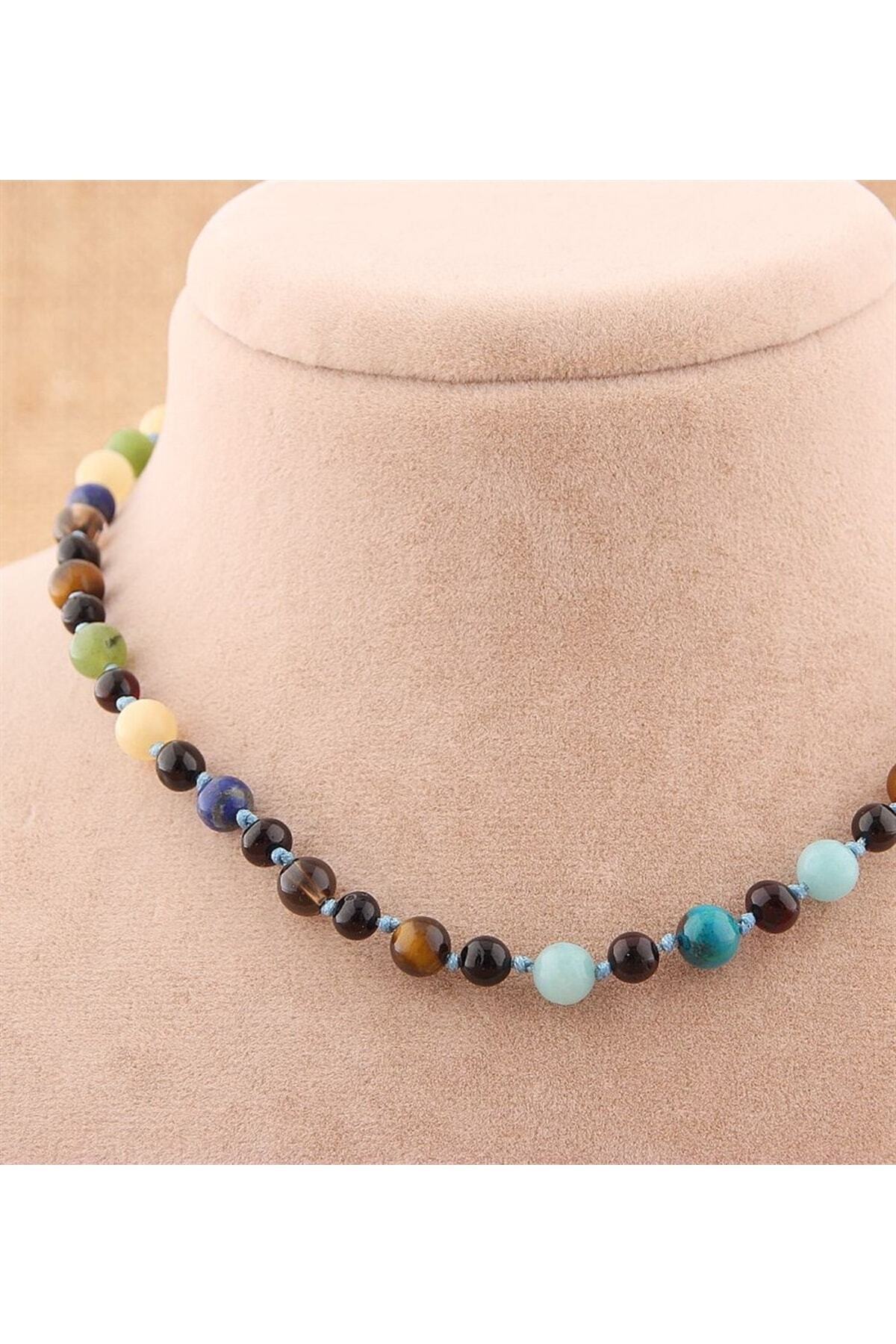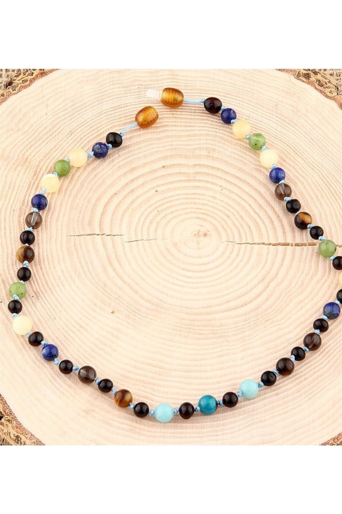 Sertifikalı Doğal Taş Bebek Kolye - Dumanlı Kuvars-kalsit-krizokol-yeşim-lapis-kaplan Gözü-amazonit Sertifikalı Doğal Taş Bebek Kolye - Dumanlı Kuvars-kalsit-krizokol-yeşim-lapis-kaplan Gözü-amazonit ODTK11383 35 cm