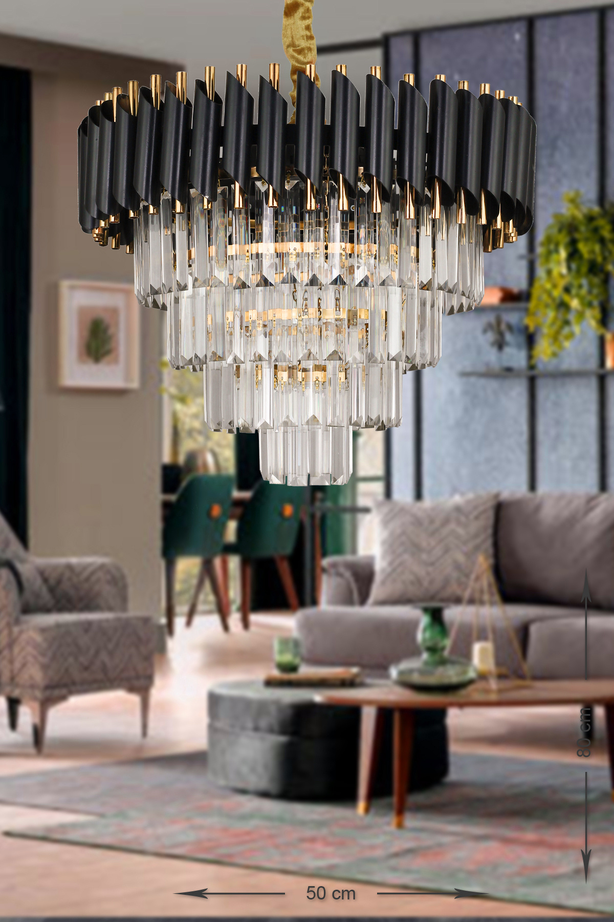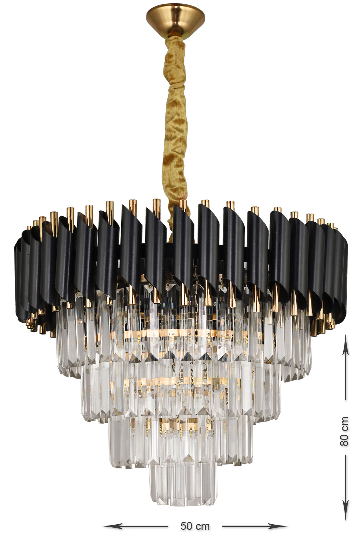 Palmira 50'lik Kristal Taşlı Lüks Avize - (siyah-gold) Palmira 50'lik Kristal Taşlı Lüks Avize - (siyah-gold) PK-606-50G تک سایز