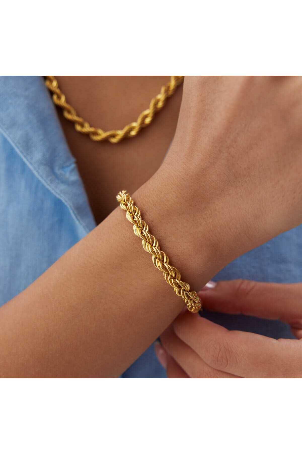 14 Ayar Altın Üç Sıra Halat Pullu Bileklik 10 Mm 14 Ayar Altın Üç Sıra Halat Pullu Bileklik 10 Mm DG18794 19 cm