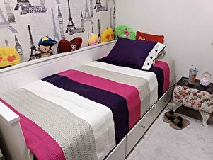 Akrilik Örgü Battaniye Seti Tek Kişilik Mor Krem Akrilik Örgü Battaniye Seti Tek Kişilik Mor Krem BTST00100101 تک سایز