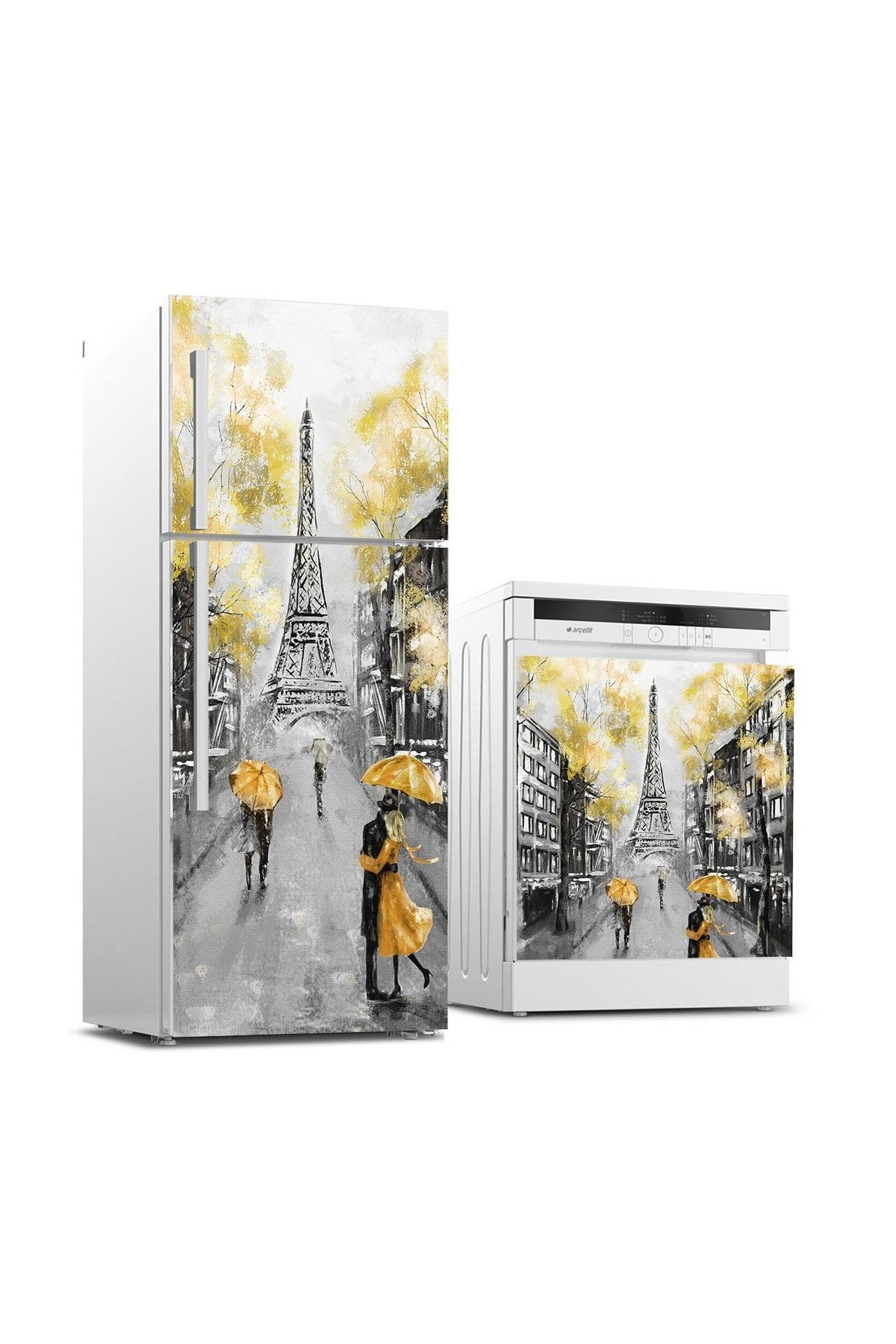 Buzdolabı Ve Bulaşık Makinası Beyaz Eşya Sticker Kaplama Paris Yağlıboya Buzdolabı Ve Bulaşık Makinası Beyaz Eşya Sticker Kaplama Paris Yağlıboya BB-TK-37 70 x 180