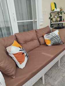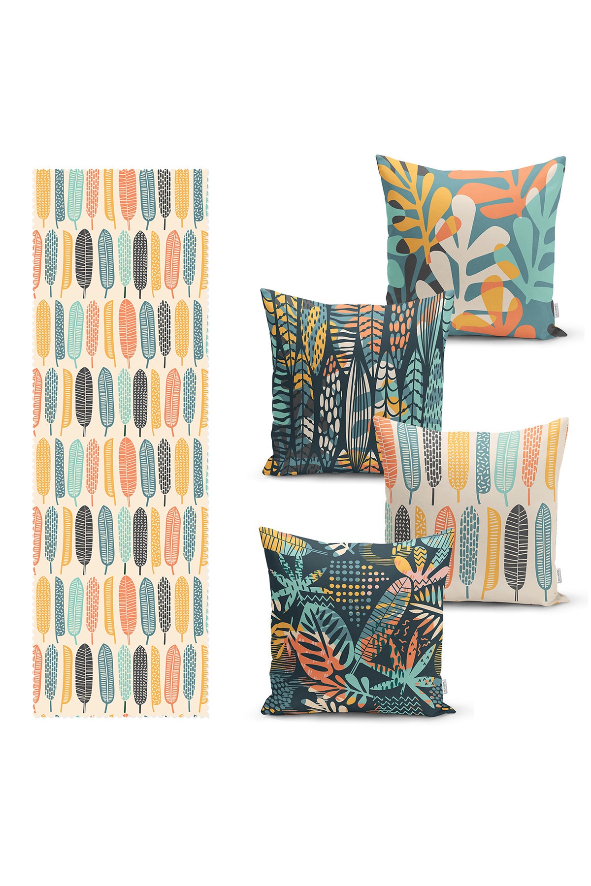 Renkli Soyut Renkli Tropik Yaprak Tasarımlı 4 Kırlent Kılıfı Ve 1 Runner Seti Renkli Soyut Renkli Tropik Yaprak Tasarımlı 4 Kırlent Kılıfı Ve 1 Runner Seti RunnerSet299 43 x 43