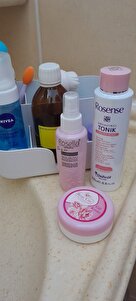 Üstte görünsün diye 5 yıldız veriyorum. Öncelikle benim cilt tipim yağlı ve beyaz tenliyim. Cildim çok hassas ıspartadan aldığım gül suyunu tonik olarak ve gül kremini de nemlendirici olarak kullanıyorum. Tonik sıkılaştırıcı etkiye sahip ve doğal içerikli diye aldım. Benim cildimi aşırı derecede yaktı gözlerim sulandı hatta. Ben de pamuğa tonikten biraz döktükten sonra gül suyumdan sıktım (gül suyum sprey şeklinde, rosellanın ürünü) o zaman yanması geçti ve kullanmam daha rahat oldu.Tonik gerçekten temizleyici etkiye sahip ama sıkılaştırıyor mu, gözeneklerimi küçültüp siyah noktalarımı azaltıp azaltmadığını daha tam kestiremiyorum.1 ay kullandıktan sonra yorumu güncelleyeceğim. Son olarak rosensenin ürünleri yani ürünün yanında gönderilen hediye krem losyon vs. denedikten sonra farkettiğim hep parfümlüler. Cildim her hediyeyi yüzüme kullandığımda yaktı. Sadece vücüt losyonu ya da nemlendiricisi olacak gerçekten güzel kokuyordu bir ara ondan almayı düşüneceğim çünkü çevremdekiler de çok sevdi.
