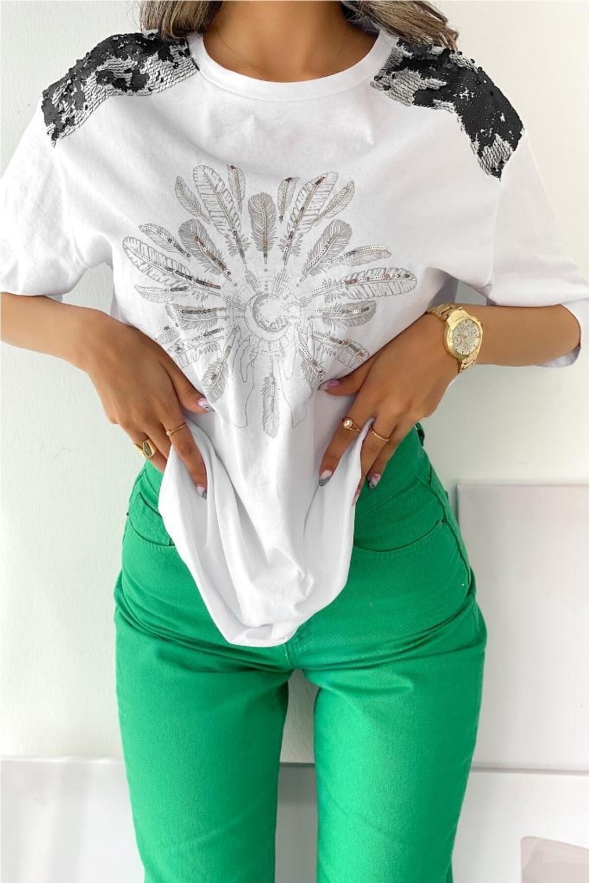 Kadın Beyaz Yaprak Desen Pul Payet İşlemeli Pamuk Tişört Kadın Beyaz Yaprak Desen Pul Payet İşlemeli Pamuk Tişört 55p4yt5s L