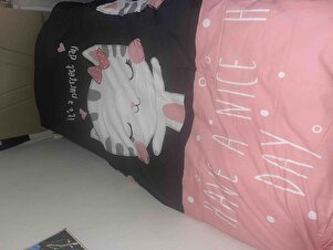 Çarşafı Lastikli Doğal Sağlıklı Pamuk Kedili Siyah-pembe Tek Kişilik Çocuk Nevresim Takımı Çarşafı Lastikli Doğal Sağlıklı Pamuk Kedili Siyah-pembe Tek Kişilik Çocuk Nevresim Takımı hsn0978 تک سایز