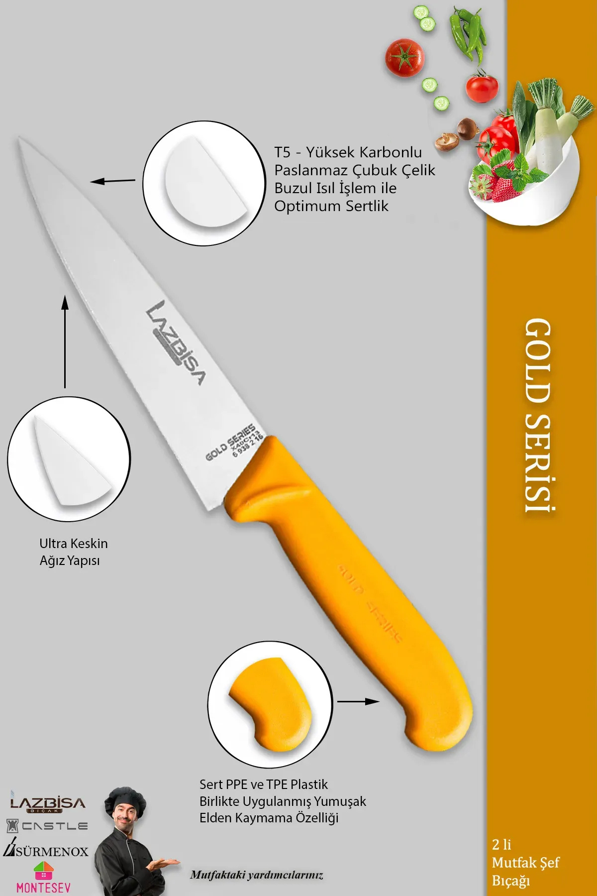 Gold Serisi Mutfak Bıçak Seti Et Ekmek Sebze Bıçağı 2 Li Set Günlük Kullanım ( Mtf-010) Gold Serisi Mutfak Bıçak Seti Et Ekmek Sebze Bıçağı 2 Li Set Günlük Kullanım ( Mtf-010) Şef9 تک سایز