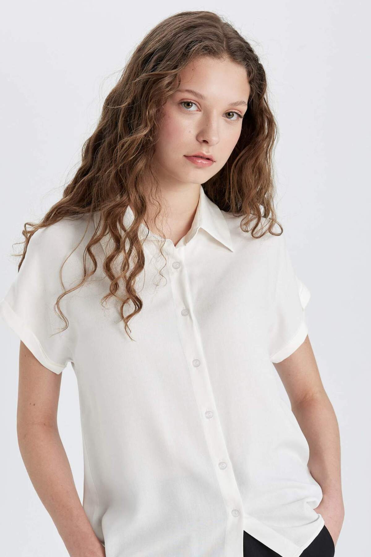Kadın Beyaz Kısa Kollu Likralı Pamuklu Klasik Gömlek Kadın Beyaz Kısa Kollu Likralı Pamuklu Klasik Gömlek swe-60031-2y1 5XL