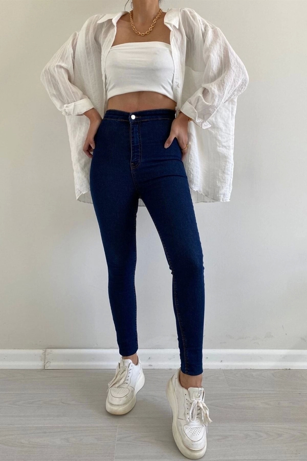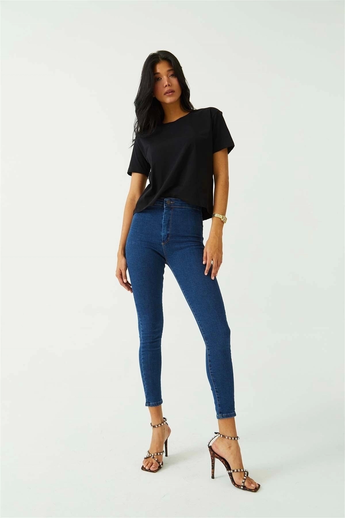 Siyah Yüksek Bel Skinny Fit Jean Likralı Önü Cepsiz Pantolon Siyah Yüksek Bel Skinny Fit Jean Likralı Önü Cepsiz Pantolon HRM-104 34