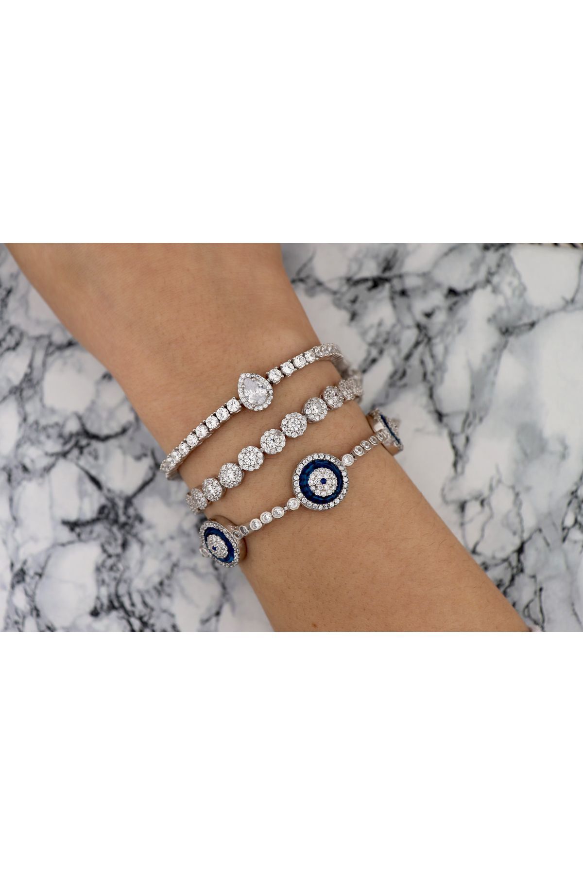 925 Ayar Gümüş Beyaz Yuvarlak Taşlı Su Yolu Bileklik 925 Ayar Gümüş Beyaz Yuvarlak Taşlı Su Yolu Bileklik 5094 18