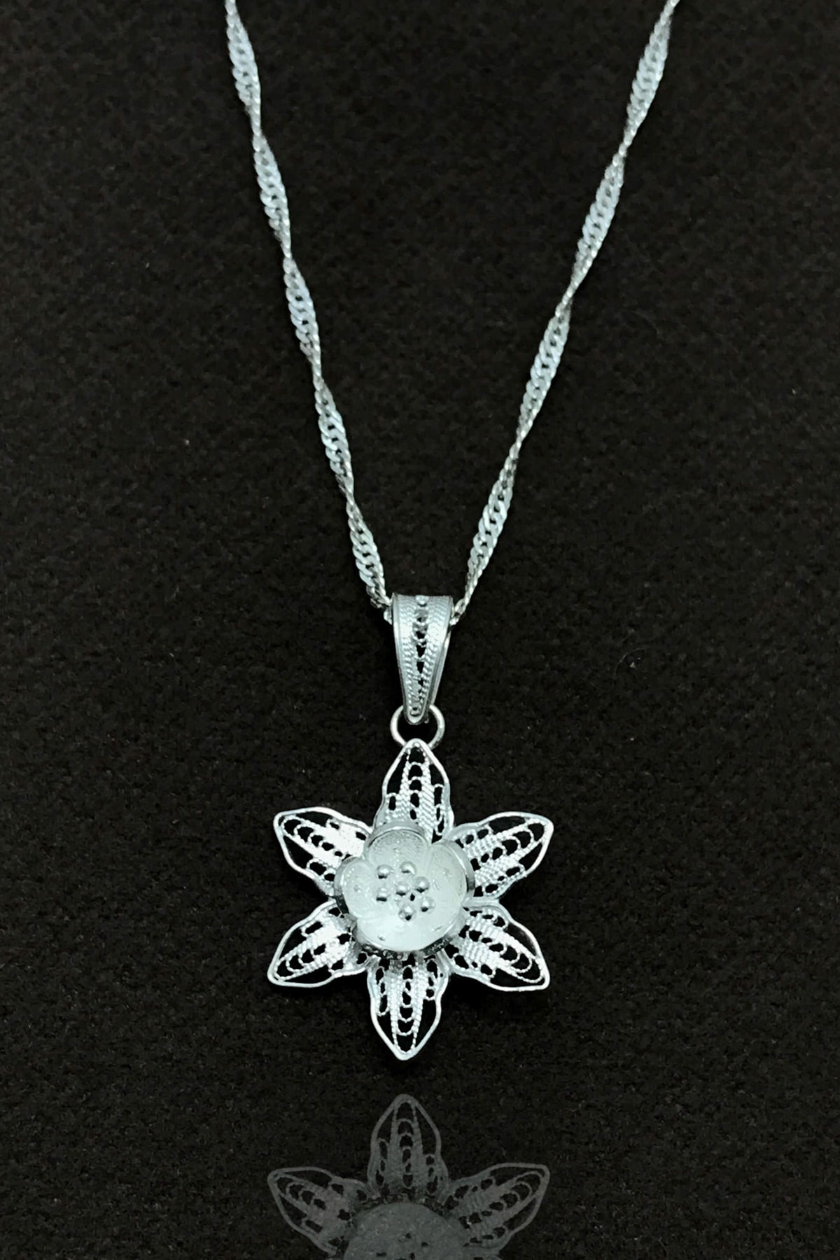 Siyah Zirkon Taşlı Zambak Tasarım Telkari Gümüş Kolye Siyah Zirkon Taşlı Zambak Tasarım Telkari Gümüş Kolye 201019391 45 cm