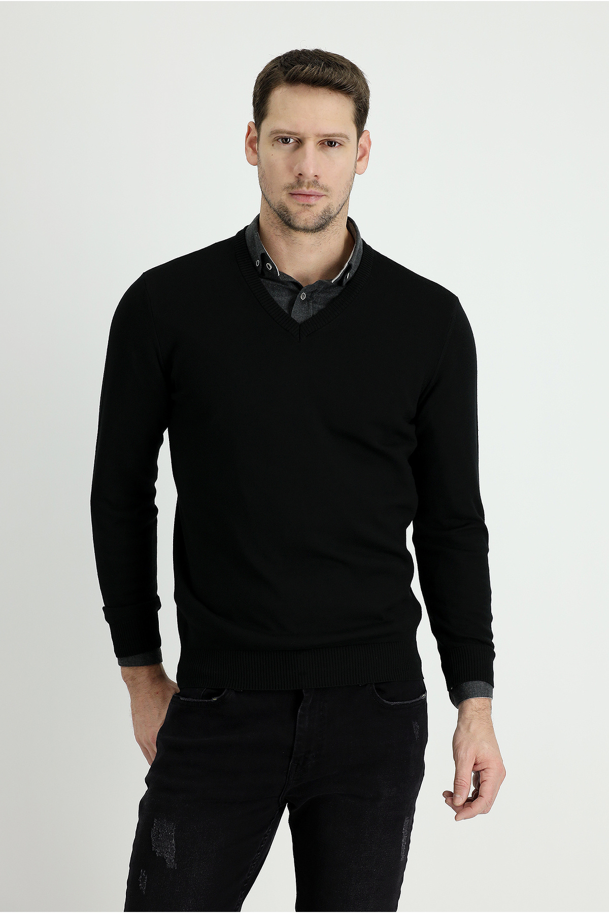 V Yaka Siyah Merino Yün Triko V Yaka Siyah Merino Yün Triko TYC00145778091 3XL