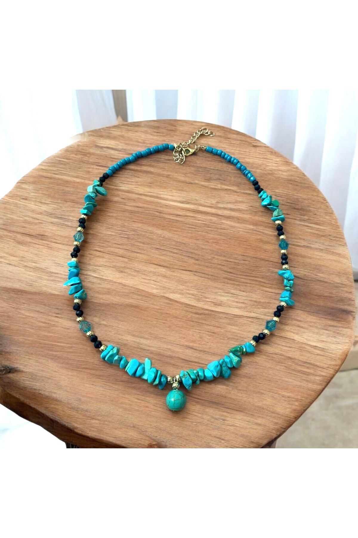Afrika Turkuazı Ve Siyah Inci Kolye Afrika Turkuazı Ve Siyah Inci Kolye F05101 تک سایز