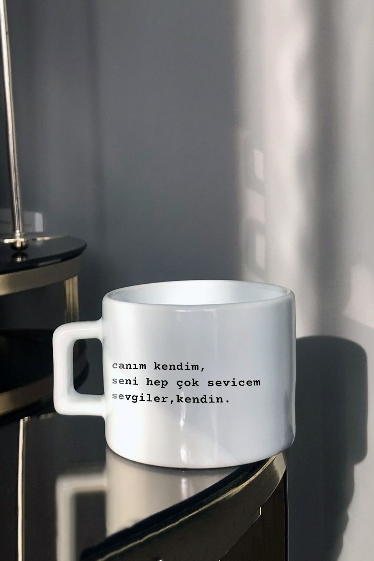 Canım Kendim Seni Hep Çok Sevicem Mottolu Tasarımlı Beyaz Türk Kahvesi Fincanı Canım Kendim Seni Hep Çok Sevicem Mottolu Tasarımlı Beyaz Türk Kahvesi Fincanı he-f-2105 تک سایز