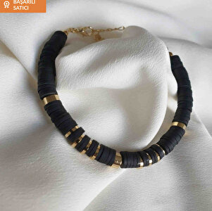 Gold Rondela Detaylı Siyah Fimo Bileklik Gold Rondela Detaylı Siyah Fimo Bileklik M1393 تک سایز