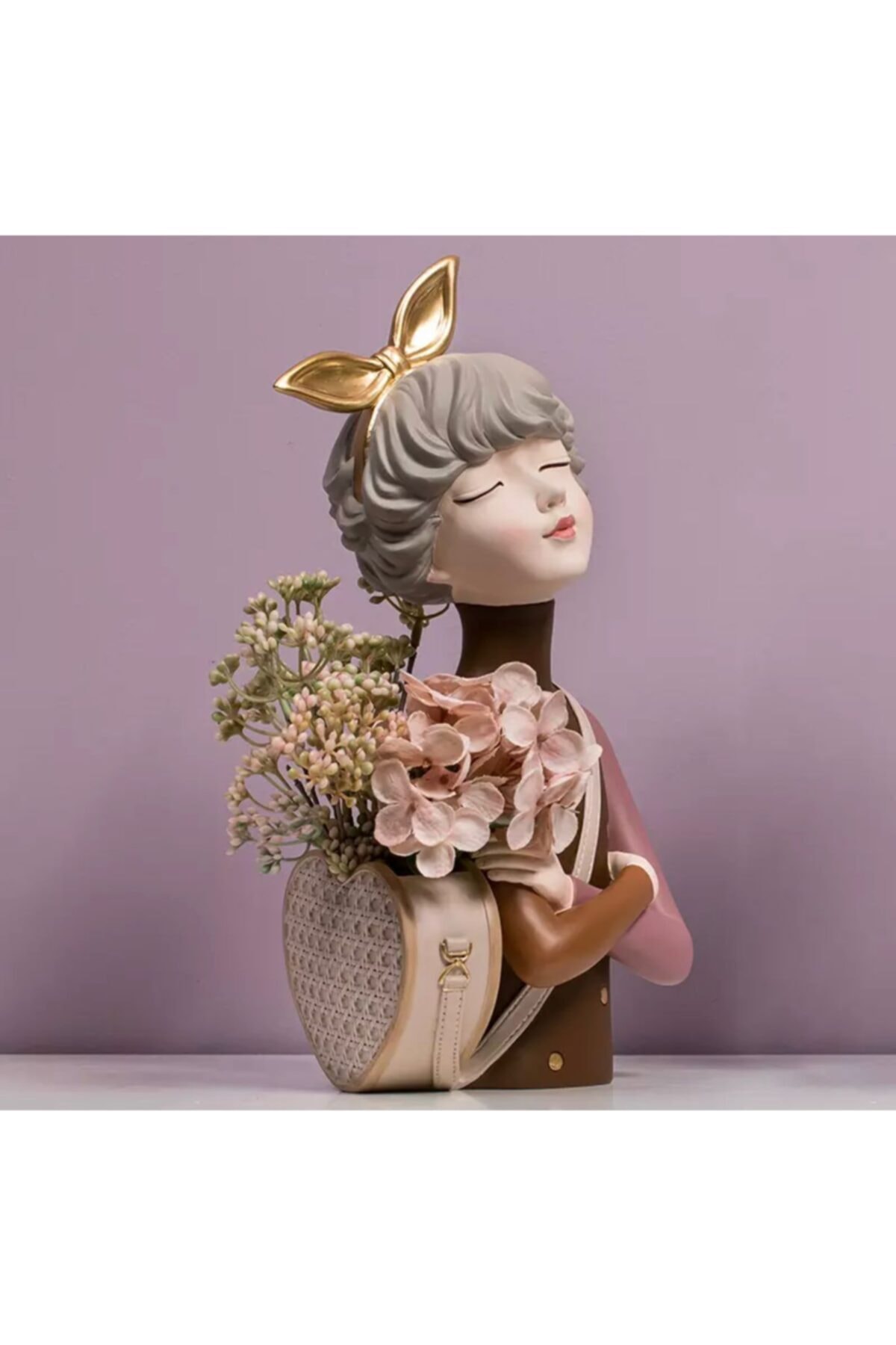 Tasarim Cicekli Buket Tutan Kiz Biblo Simli Kahverengi & Mavi (33x16 Cm) Tasarim Cicekli Buket Tutan Kiz Biblo Simli Kahverengi & Mavi (33x16 Cm) buketli1001 تک سایز