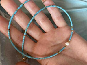 Turkuaz Renkli Afgan Doğal Taşlı Gerçek Mayorka Inci Gold Aksesuarlı El Yapımı Minimal Kolye Turkuaz Renkli Afgan Doğal Taşlı Gerçek Mayorka Inci Gold Aksesuarlı El Yapımı Minimal Kolye FKADTMİGAEYMK-0171 45 cm