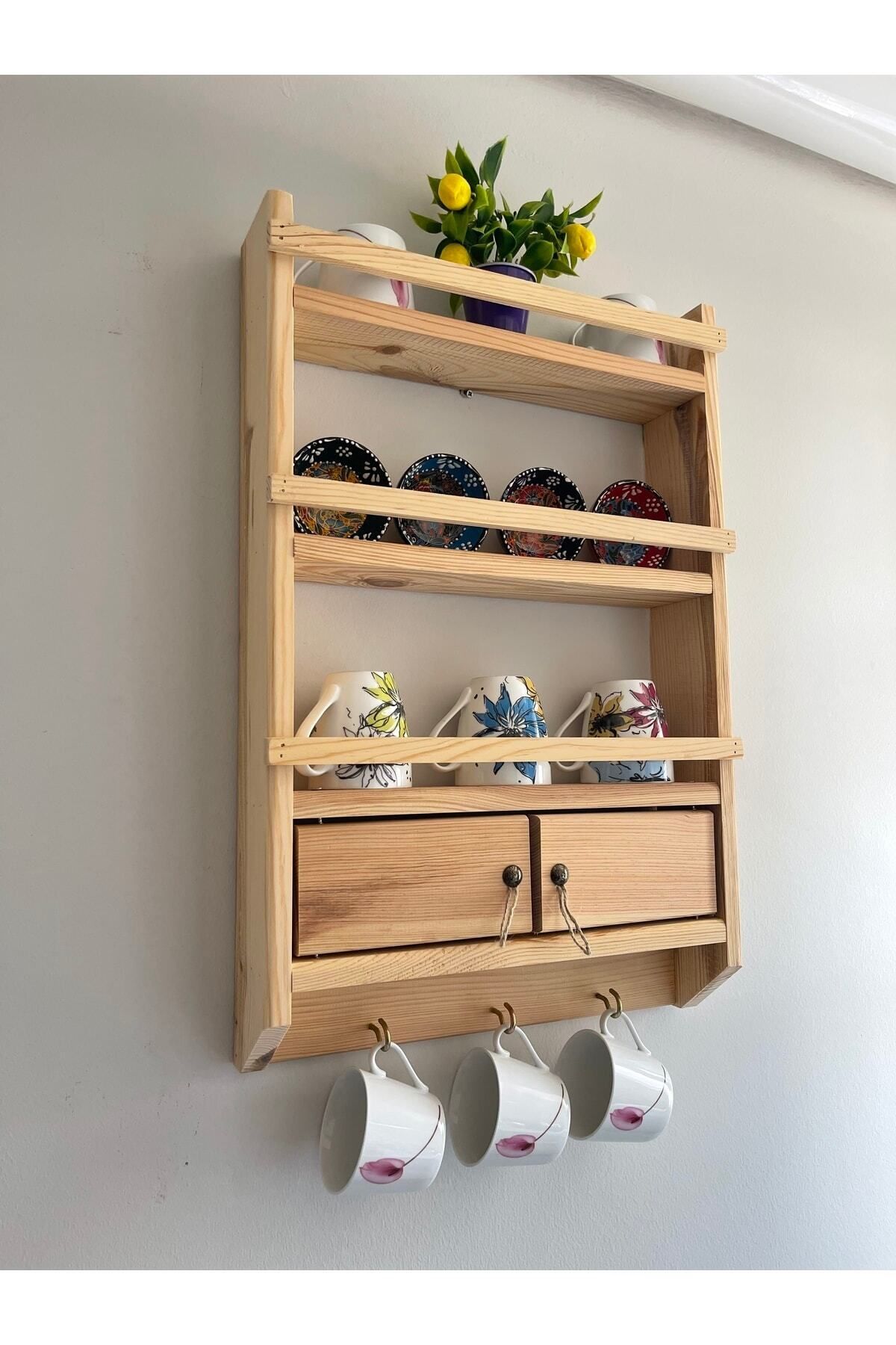 Baharatlık Bardaklık Çok Amaçlı Mutfak Rafı Ahşap Terek kurulu ürün Baharatlık Bardaklık Çok Amaçlı Mutfak Rafı Ahşap Terek kurulu ürün mraf50 تک سایز