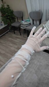 Şık Incili Gelin Düğün Eldiveni Özel Geceler Için Beyaz Uzun Tül Eldiven Şık Incili Gelin Düğün Eldiveni Özel Geceler Için Beyaz Uzun Tül Eldiven 5150-2 تک سایز