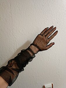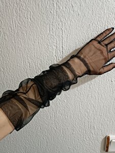 Uzun Siyah Tül Gelin Eldiveni Nikah Eldiveni Uzun Siyah Tül Gelin Eldiveni Nikah Eldiveni 6021-2 تک سایز