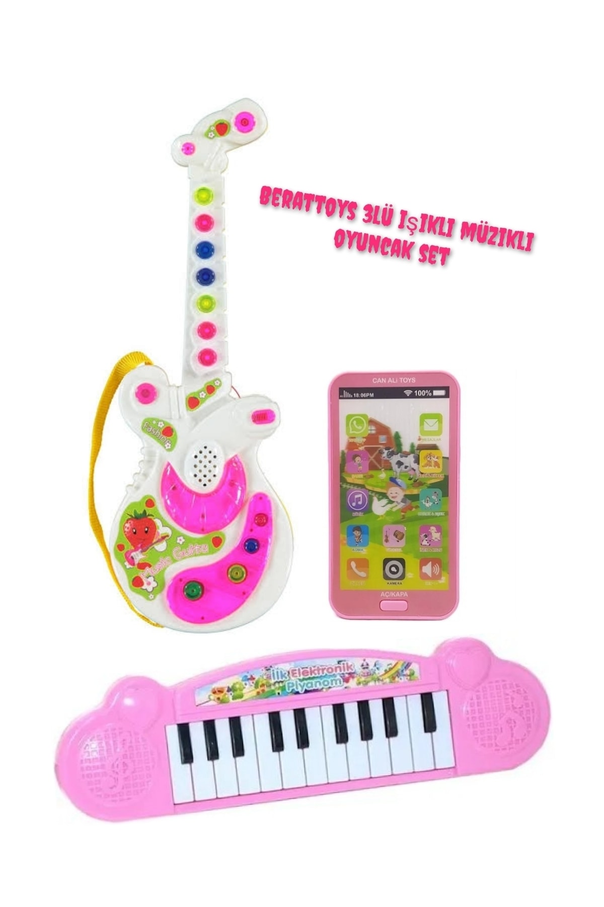Pilli Işıklı Türkçe Müzikli Gitar 4 Farklı Müzik Ve Notalar 35 Cm TYC00197017278