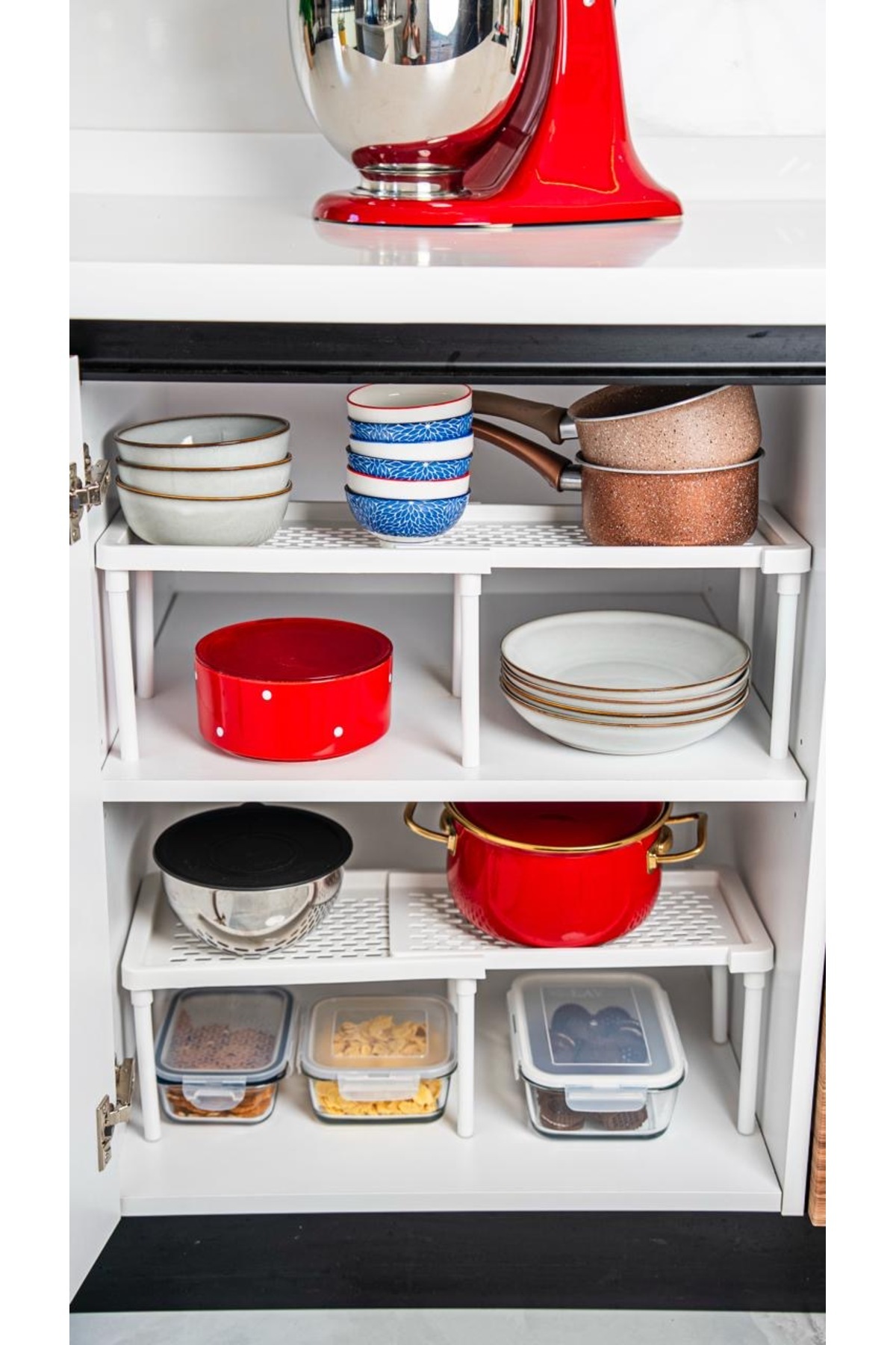Dolap içi Düzenleyici Raf Tabak Bardak Rafı Metal Raf 4'lü Dolap içi Düzenleyici Raf Tabak Bardak Rafı Metal Raf 4'lü 8100-4 تک سایز