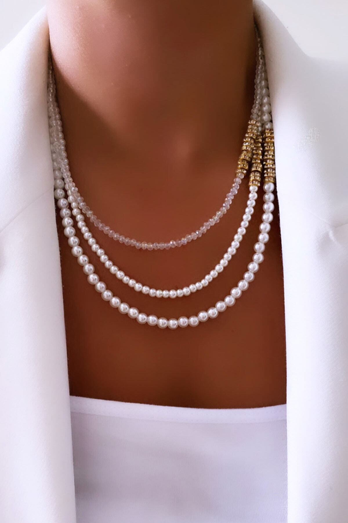 Kadın Üç Sıralı Inci Kolye Kadın Üç Sıralı Inci Kolye 520011416 تک سایز