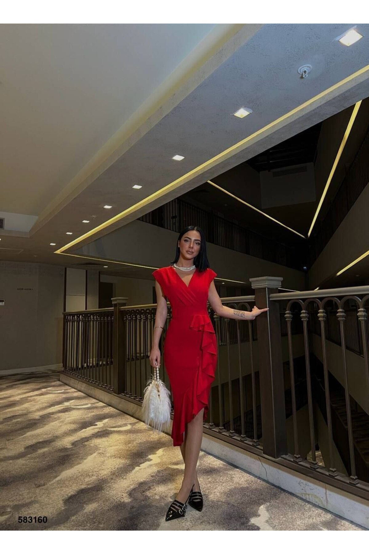 Kadın Halter Yaka Esnek Dizüstü Abiye Elbise Kadın Halter Yaka Esnek Dizüstü Abiye Elbise 80053 44