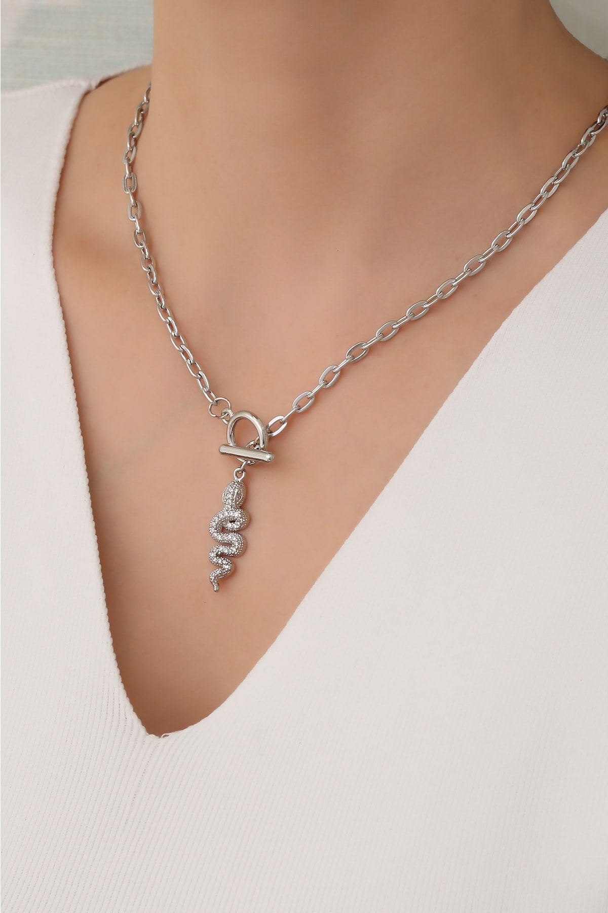 Yılan Figürlü Cam İnci Kolye Yılan Figürlü Cam İnci Kolye 520011421 تک سایز