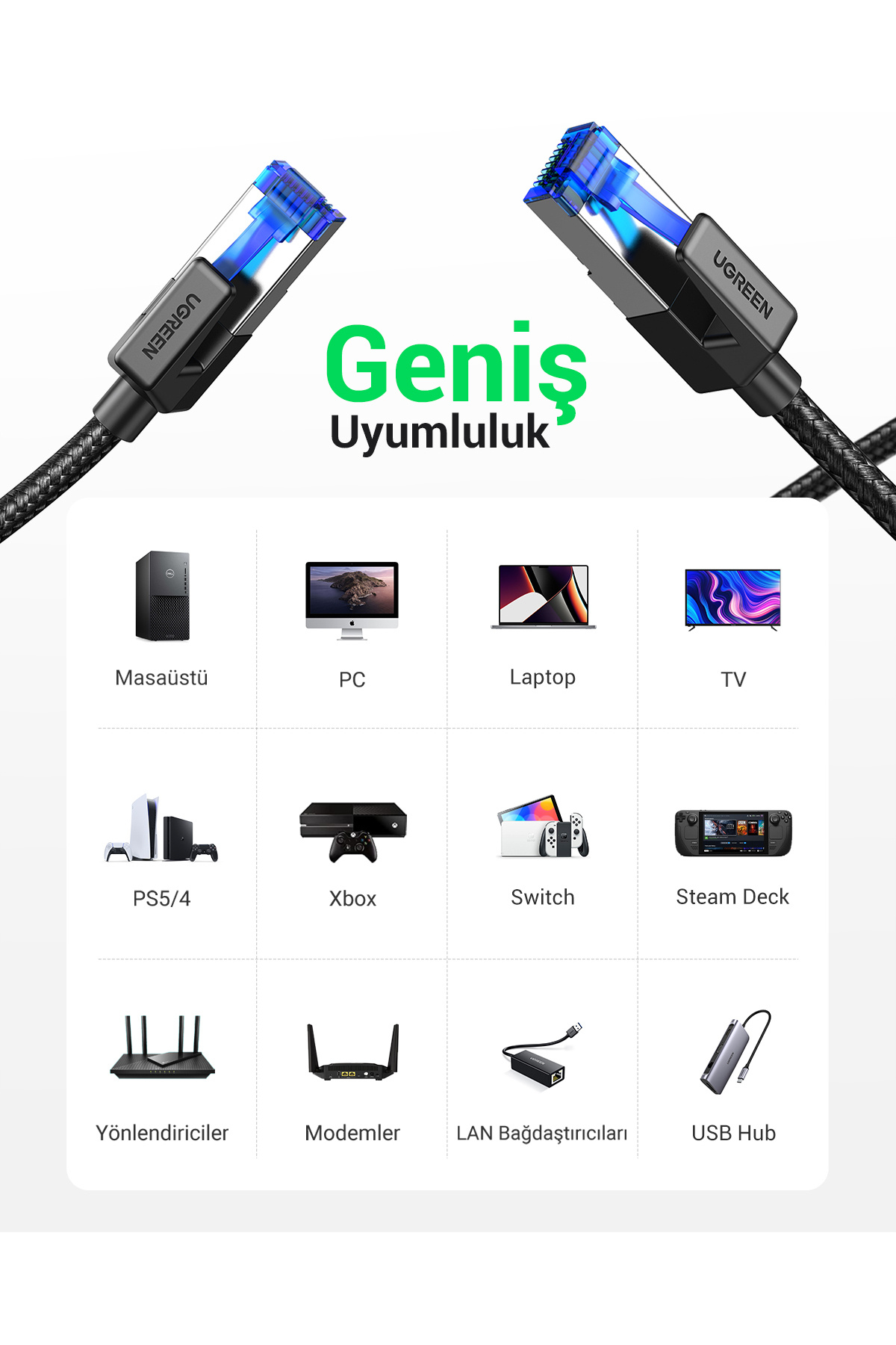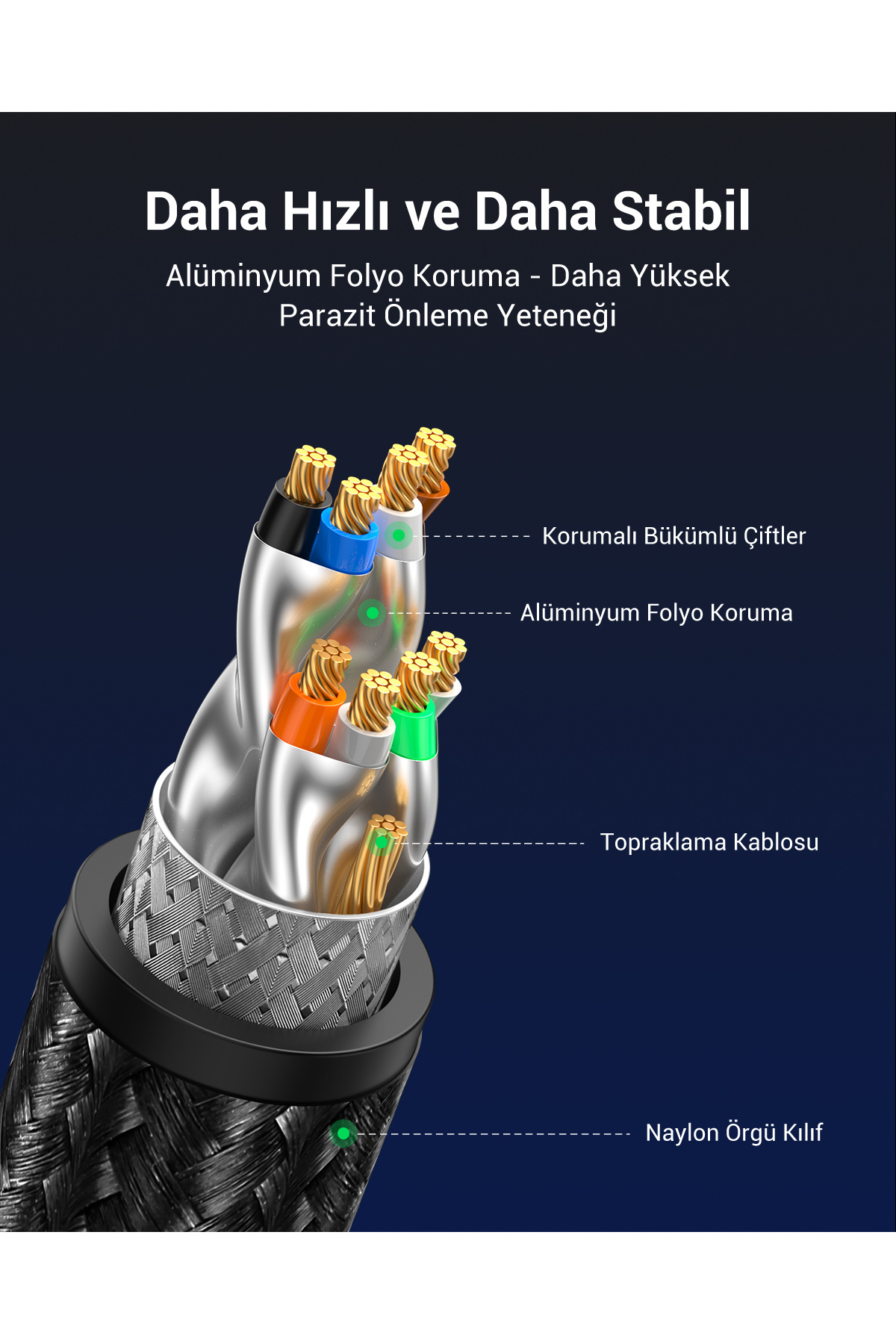 Cat8 25Gbps 2000Mhz Örgülü Ethernet Kablosu 1 Metre, 80429 Cat8 25Gbps 2000Mhz Örgülü Ethernet Kablosu 1 Metre, 80429 MT02059-UG80429 تک سایز