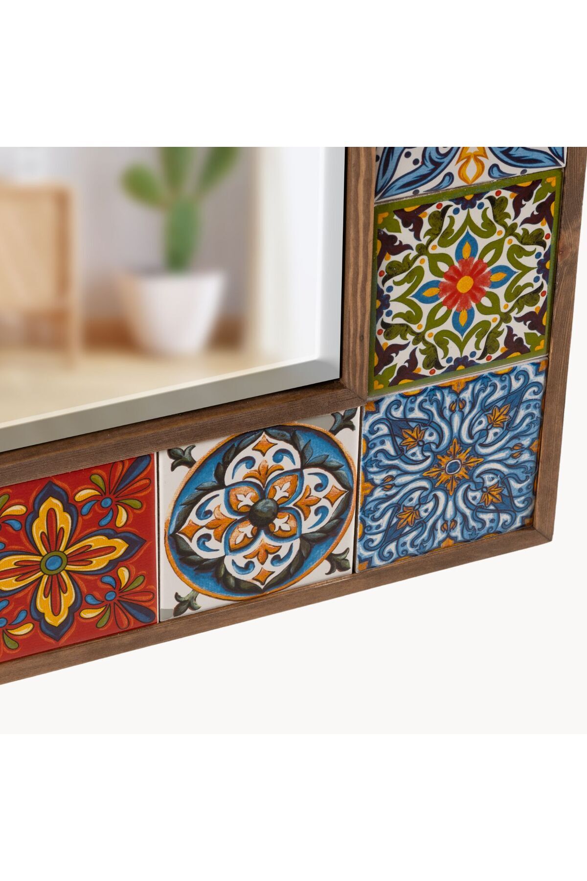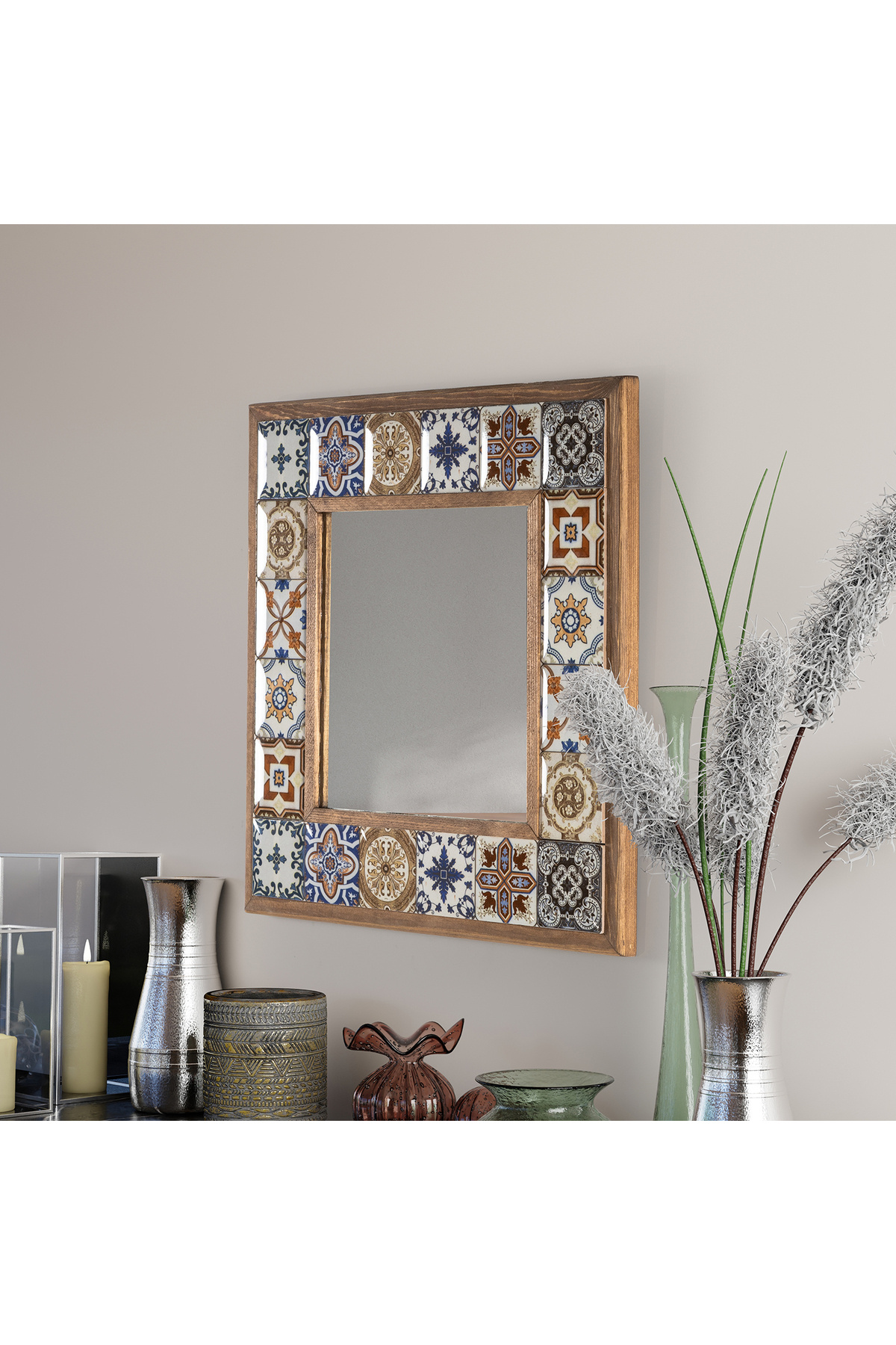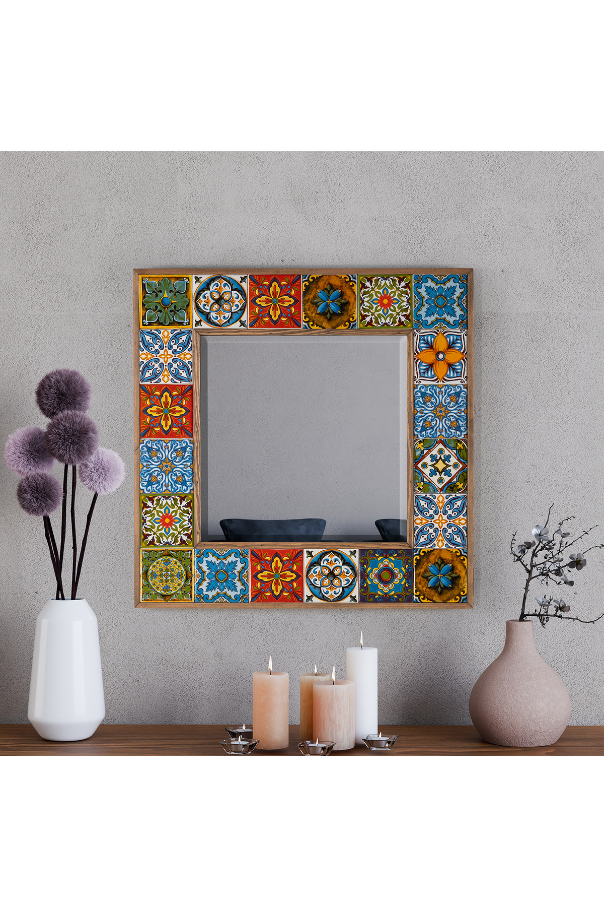 Orta Boy Etnik Çini Desenli 60x60 cm Doğal Ahşap Çerçeveli Dekoratif Duvar Aynası Orta Boy Etnik Çini Desenli 60x60 cm Doğal Ahşap Çerçeveli Dekoratif Duvar Aynası CINI-KARO-DUVAR-AYNA تک سایز